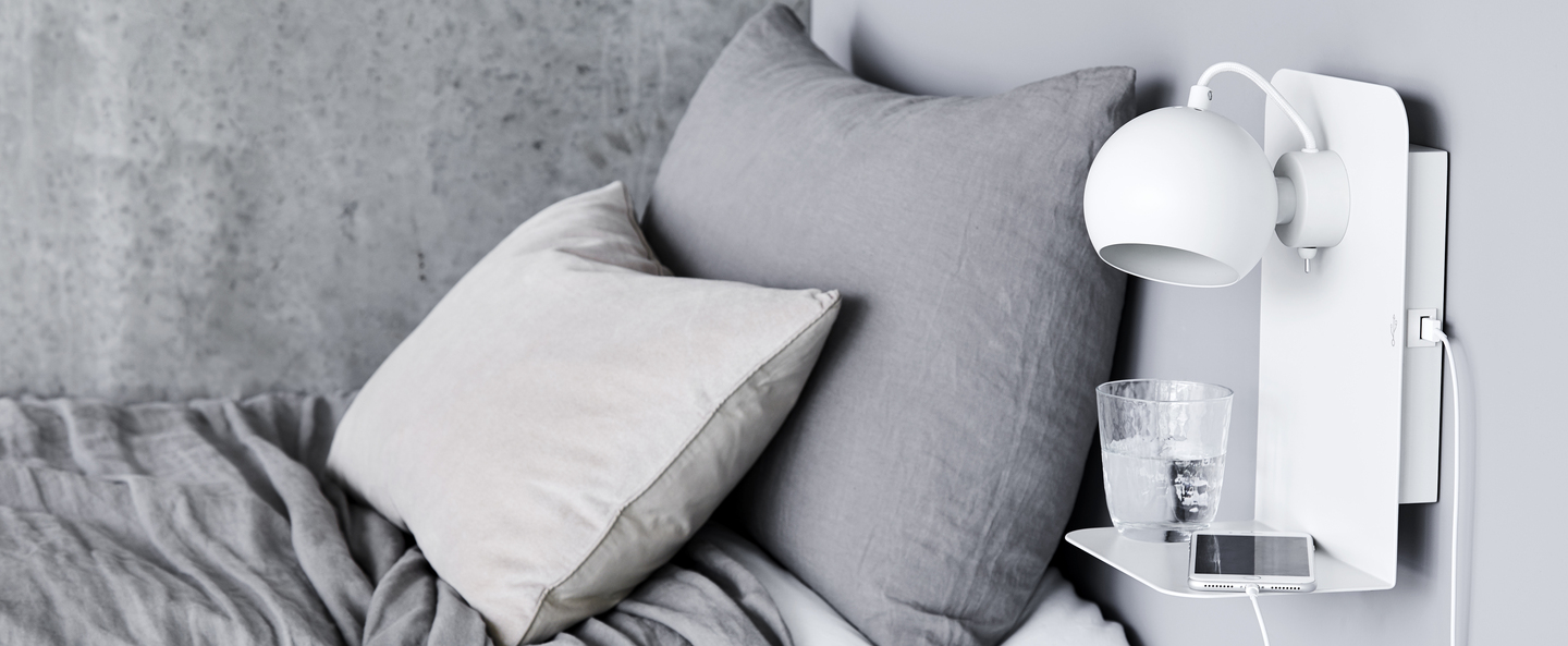 Die weiße Wandleuchte Ball USB wurde von Benny Frandsen entworfen und von seiner dänischen Marke Frandsen herausgegeben.