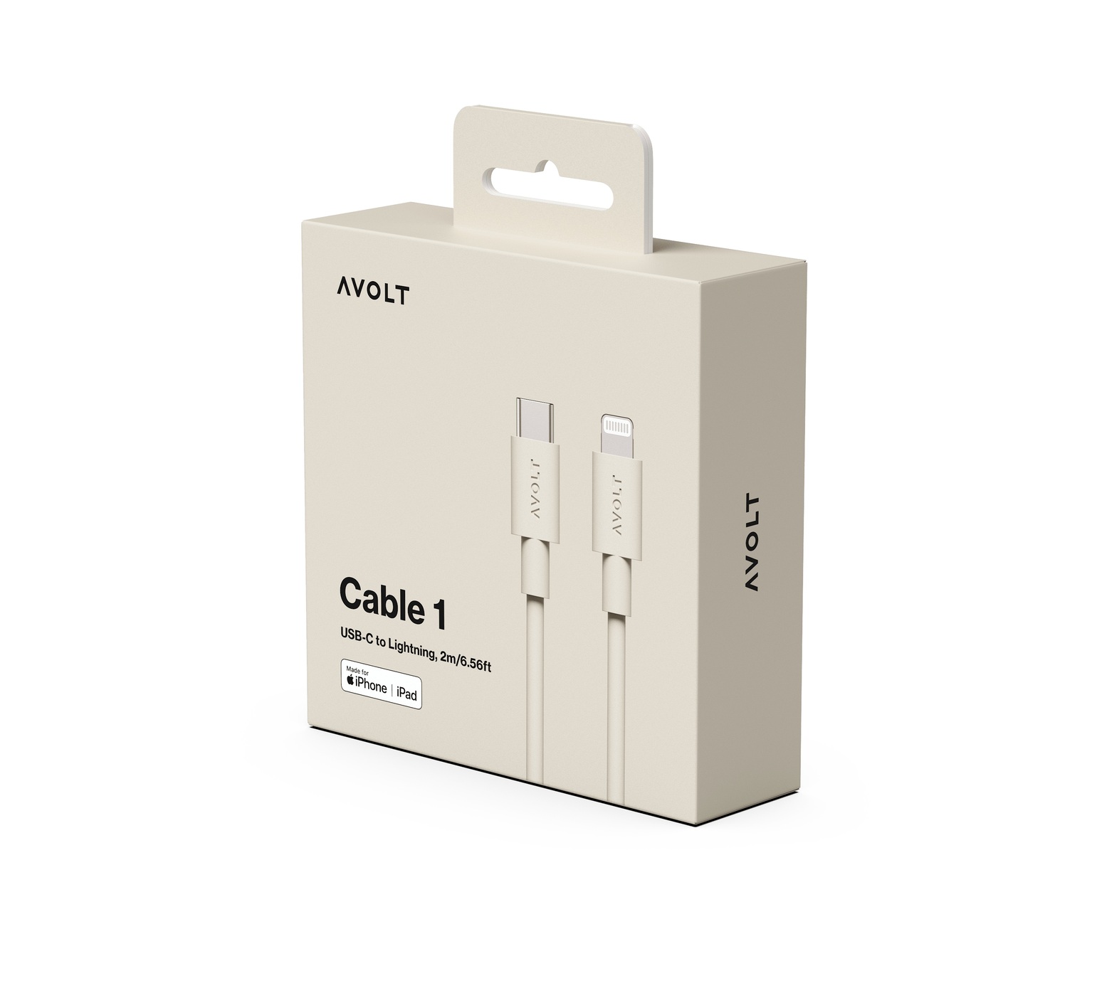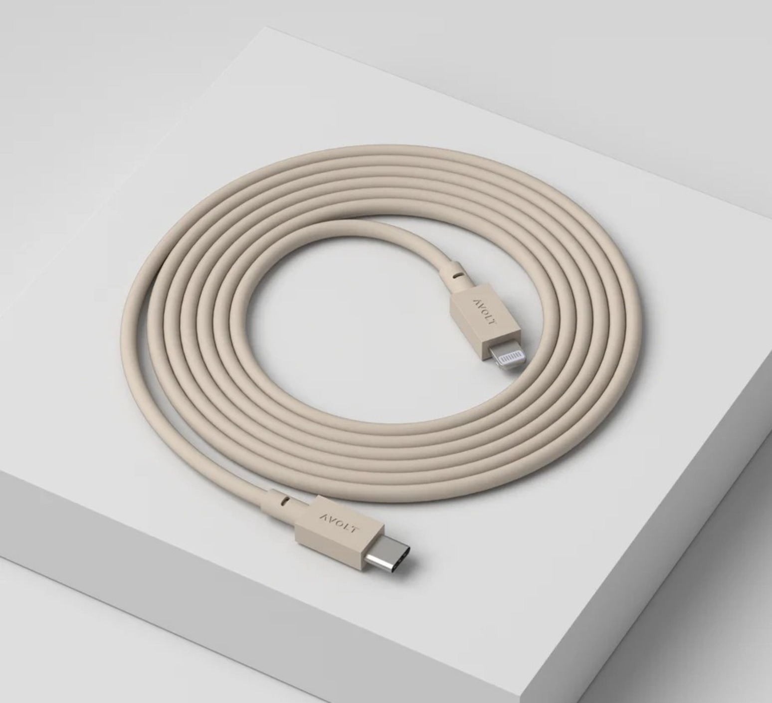 Avolt présente le Câble 1 USB-C vers Lightning x1 en teinte Sable Nomad, un câble de charge premium de 2 mètres conçu pour une alimentation fiable et rapide des appareils Apple.