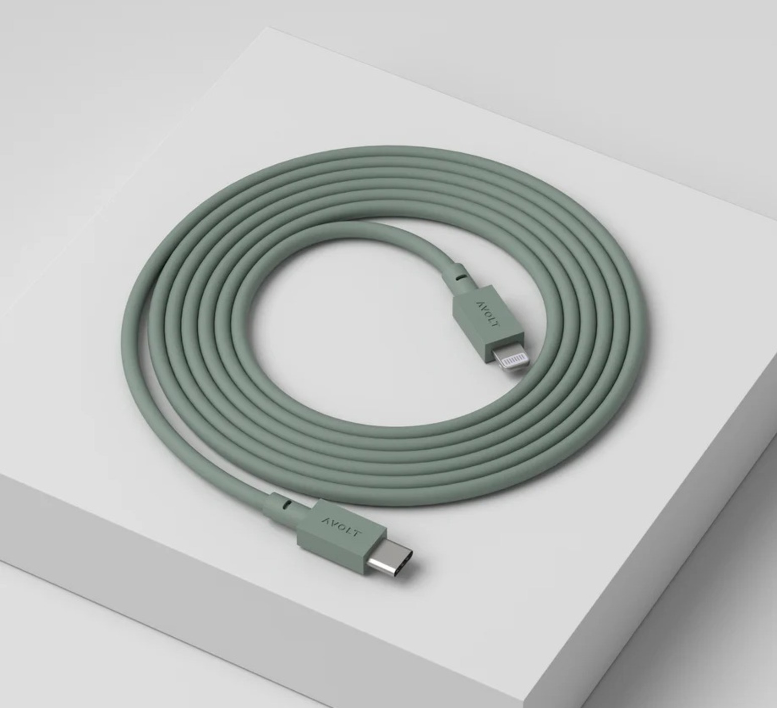 Avolt présente le Câble 1 USB-C vers Lightning x1 en teinte Vert Chêne, un câble de charge premium de 2 mètres conçu pour assurer une alimentation rapide et fiable des appareils Apple.