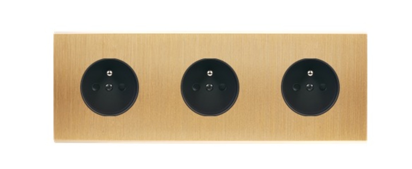 Façade, Confidence, Triple horizontal, Laiton brossé, Prise-2P+T x3, L22,2cm, H8cm - Modelec
