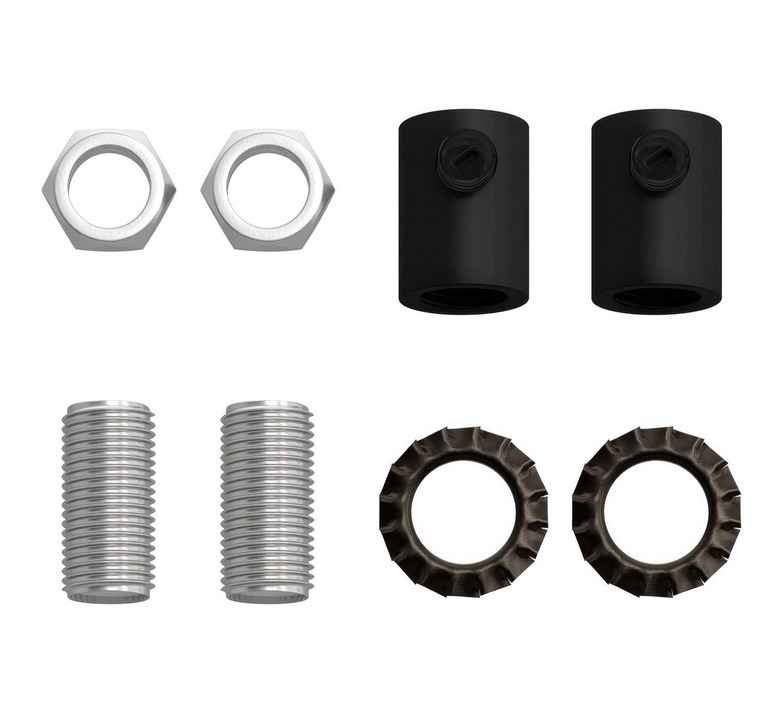 Leur design cylindrique minimaliste et leur finition noire satinée s’accordent harmonieusement avec tous les styles de luminaires – du contemporain à l’industriel – apportant une touche raffinée et discrète à chaque projet. Parfaits pour finaliser une suspension ou une lampe sur mesure, ils permettent de transformer chaque détail en élément de design.