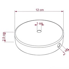Avec un diamètre de 12 cm, cette rosace en saillie s’adapte à diverses configurations. Veuillez noter que les accessoires pour connecter la rosace à la ligne électrique ne sont pas inclus.