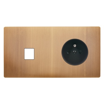 Façade, Confidence, Double horizontal, Laiton brossé, Prise-PC x2, ...