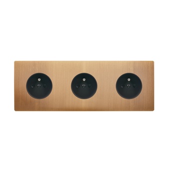 Façade, Confidence, Triple horizontal, Laiton brossé, Prise-2P+T x3...