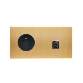 Interrupteur et Prise, M, Double horizontal, Laiton brossé, Va-et-v...