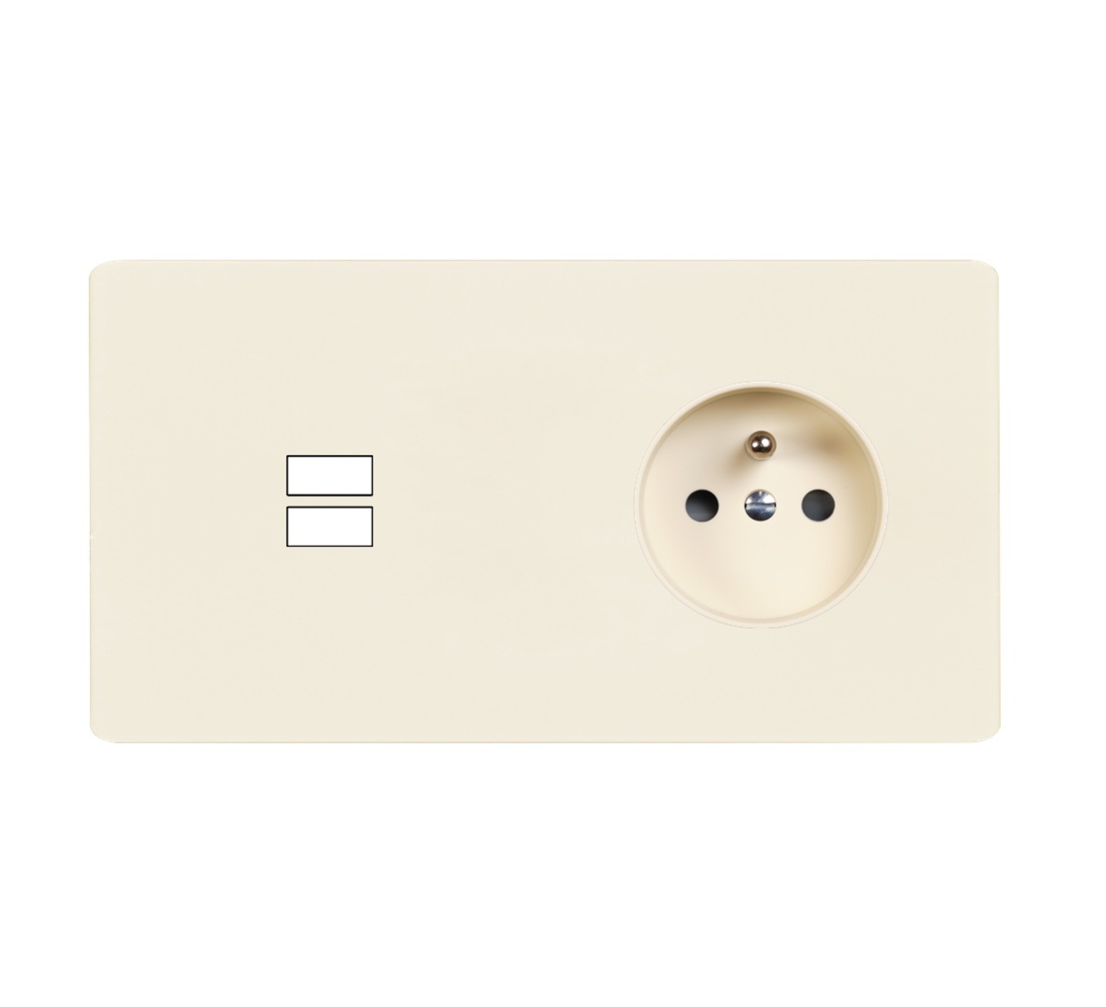 Frontplatte, M, Doppel horizontal, Elfenbein, USB-Stecker x2, Steckdose-2P+T x1, B15,1cm, H8cm - Modelec