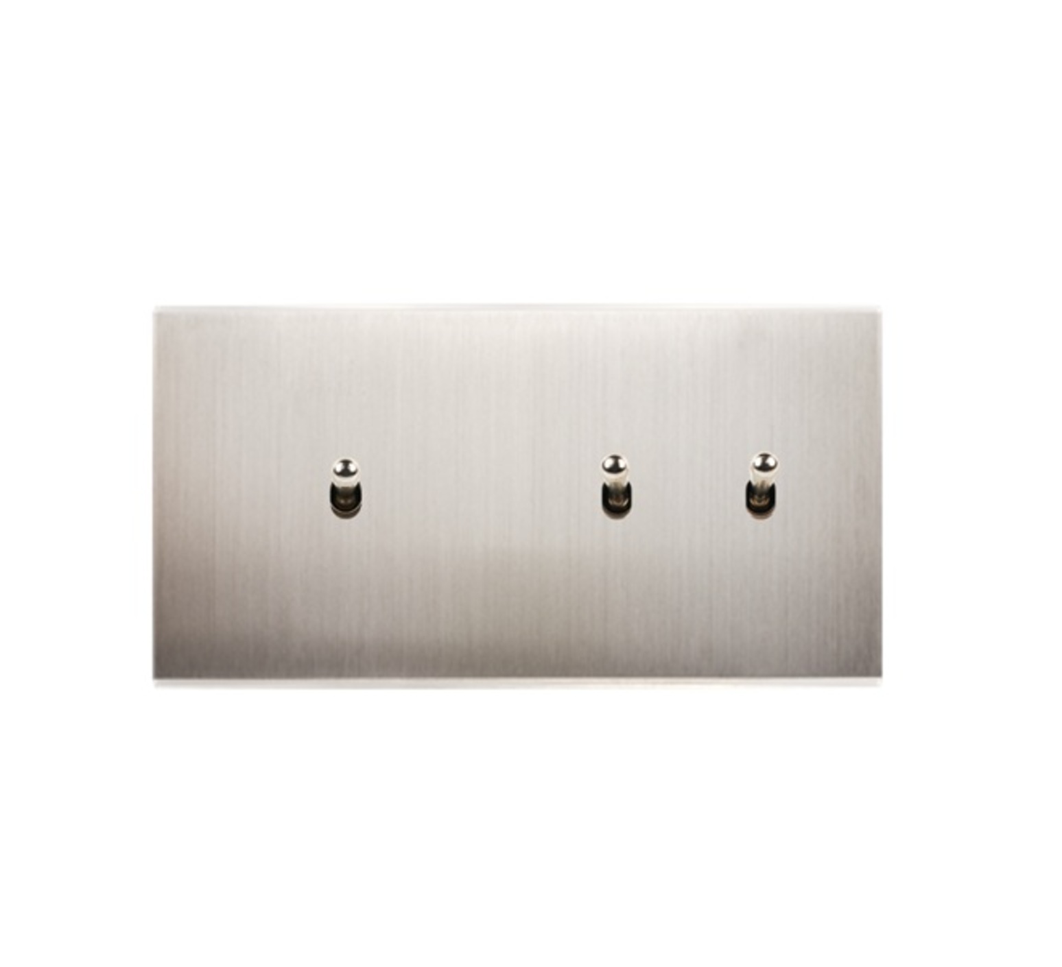 Die Marke Modelec präsentiert ihre Kollektion Confidence mit dem Schalter Triple horizontal aus satiniertem Nickel.