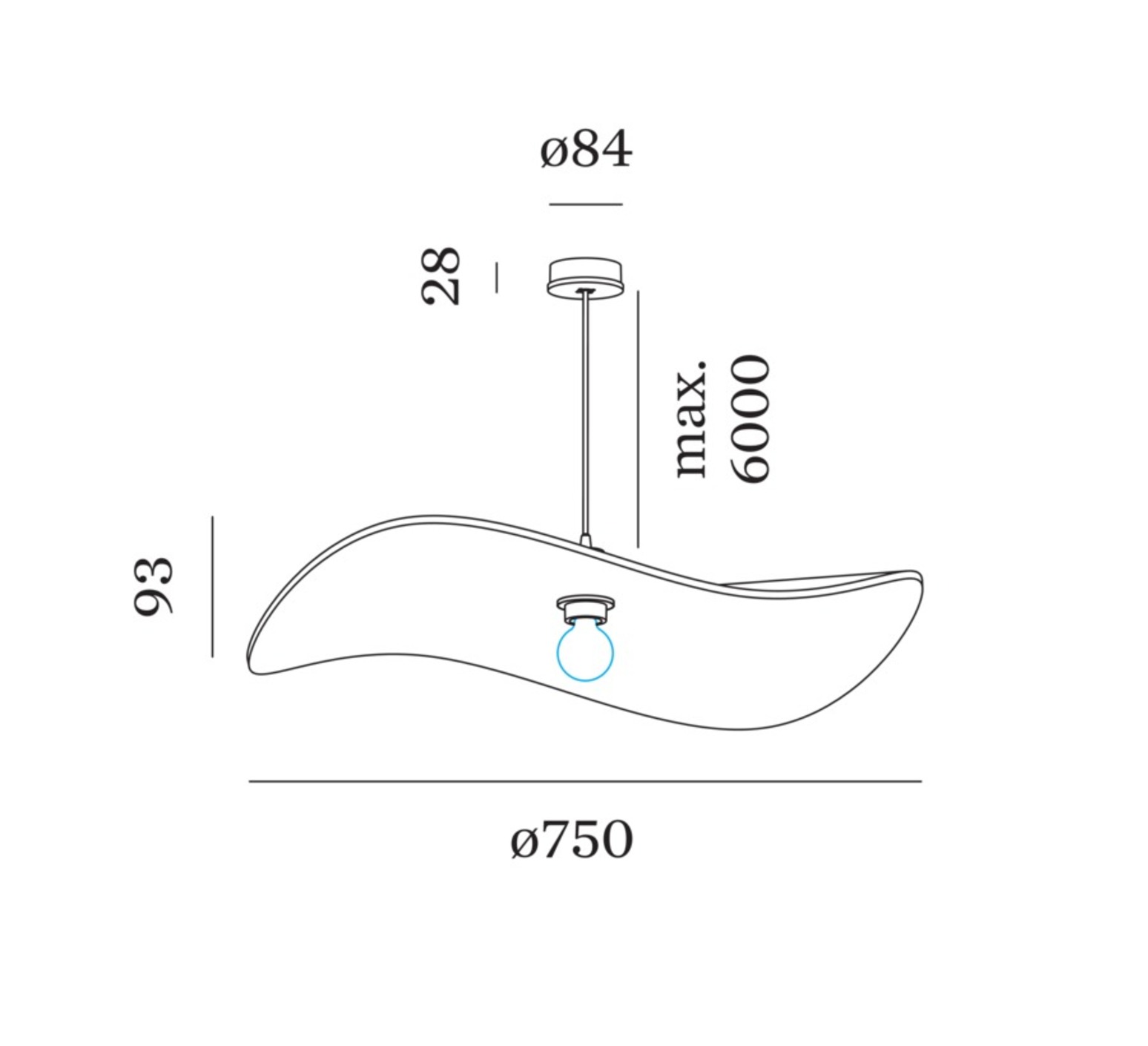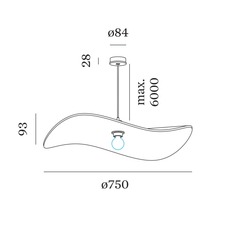 Die Pendelleuchte hat einen Durchmesser von 75 cm und ist 9,3 cm hoch.