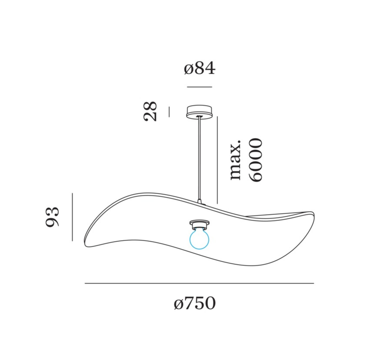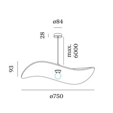 Die Pendelleuchte hat einen Durchmesser von 75 cm und ist 9,3 cm hoch.