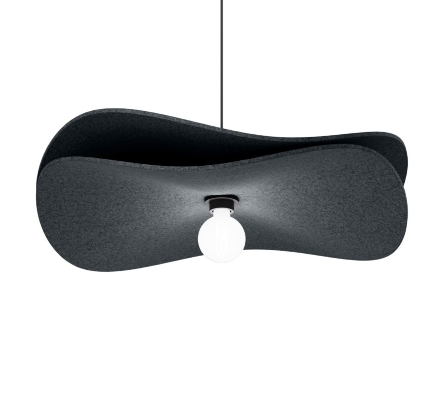 Sie ist mit einem doppelten Lampenschirm aus akustischem Filz ausgestattet und kombiniert direkte Beleuchtung mit effektiver Lärmreduzierung, um eine ruhigere und komfortablere Atmosphäre zu schaffen. Ihr Design verleiht eine warme visuelle Dimension.