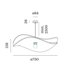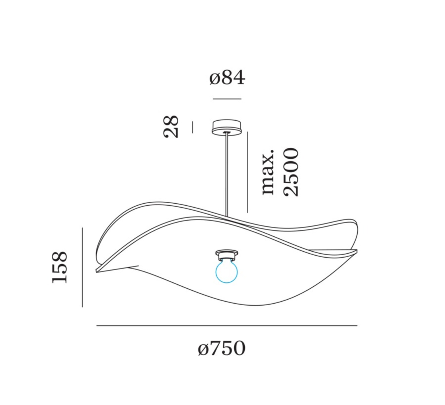 Die Pendelleuchte hat einen Durchmesser von 75 cm und ist 15,8 cm hoch.