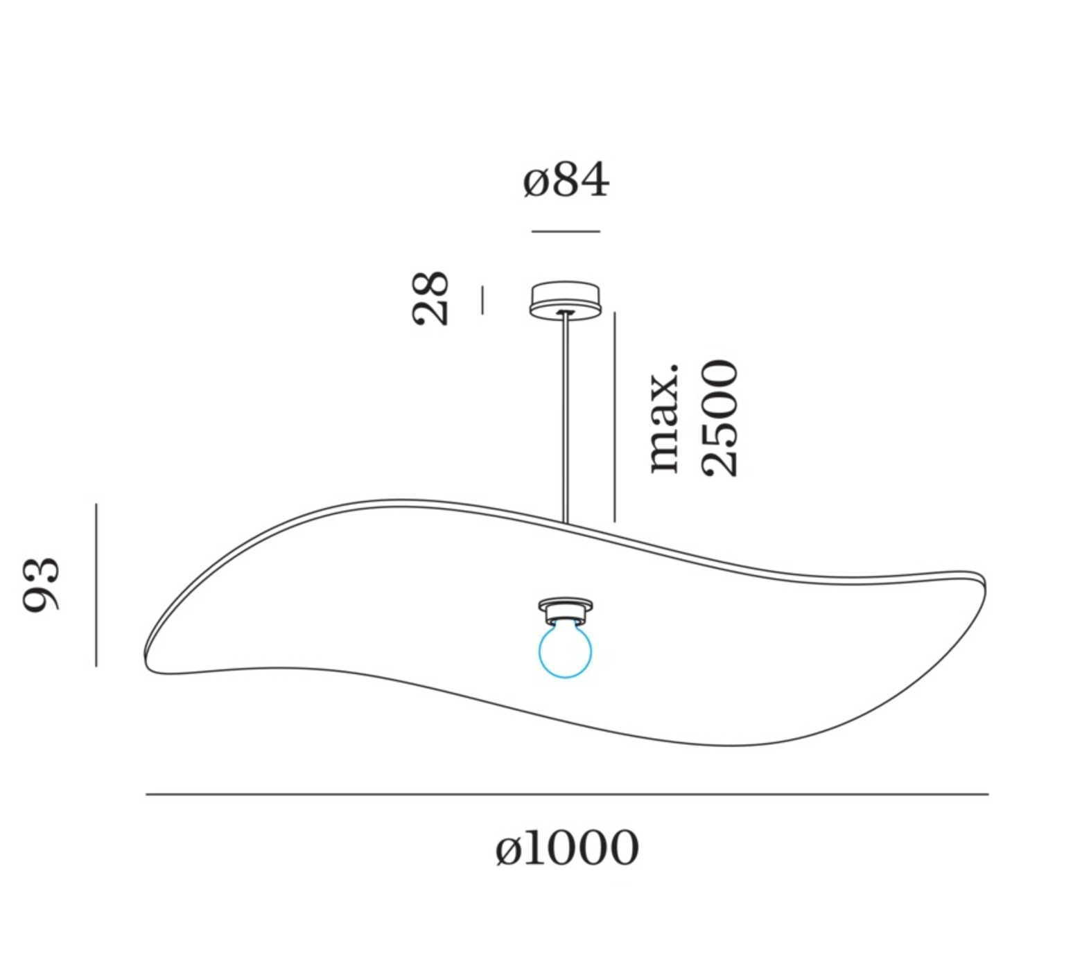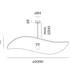 Die Pendelleuchte hat einen Durchmesser von 100 cm und ist 9,3 cm hoch.
