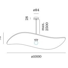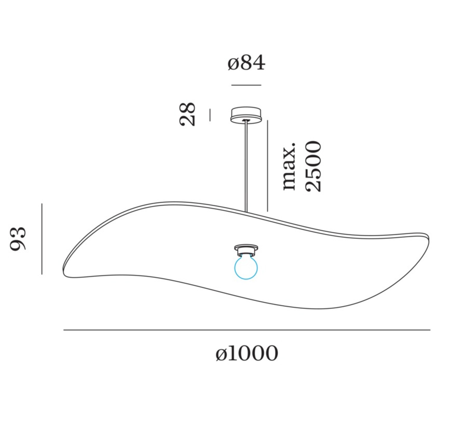 Die Pendelleuchte hat einen Durchmesser von 100 cm und ist 9,3 cm hoch.