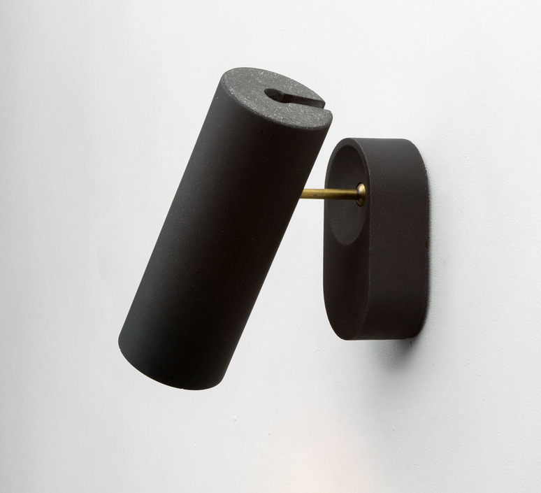 Mit ihrer röhrenförmigen Silhouette (Ø6,5 cm x H17,5 cm) und ihrer rauen schwarzen Oberfläche behauptet sich Argia als grafisches und zeitgenössisches Objekt. Ihr ausladendes Design verleiht Wänden und Decken ein Relief und fügt sich perfekt in schlichte und architektonische Umgebungen ein. Sie kann einzeln oder in Reihe aufgestellt werden, in einem Flur, einem Wohnzimmer oder als Rahmen für das Kopfende eines Bettes.
