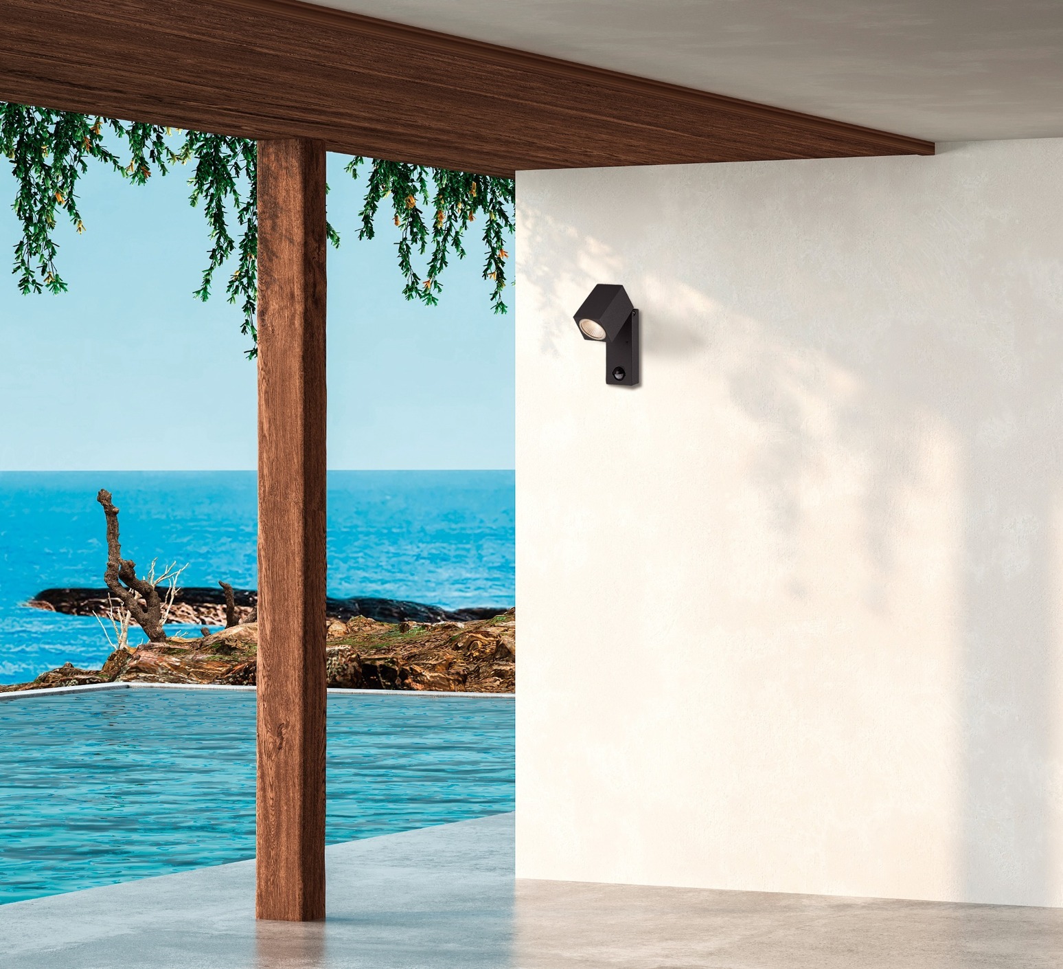 Sie wurde so konzipiert, dass sie den äußeren Bedingungen standhält, und bietet ein effizientes Licht, um die Umgebung des Hauses zu sichern und aufzuwerten. Die Wandleuchte Cala ist schwenkbar und ermöglicht es, den Lichtstrahl je nach Bedarf genau einzustellen. Sie ist außerdem mit einem Bewegungsmelder ausgestattet, der für Komfort, Sicherheit und Energieeinsparung sorgt, indem er die Beleuchtung nur dann einschaltet, wenn jemand vorbeigeht.