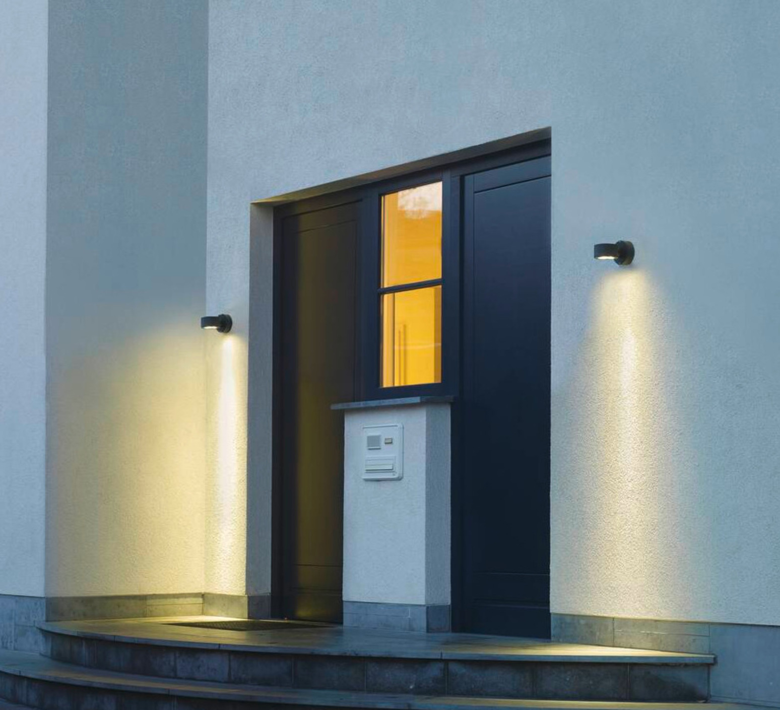 Wir empfehlen diese Wandleuchte als Komposition, mit der Sie Ihre Fassade, Ihren Vorbau, Ihre Treppe oder auch Ihre Terrasse ausstatten können.