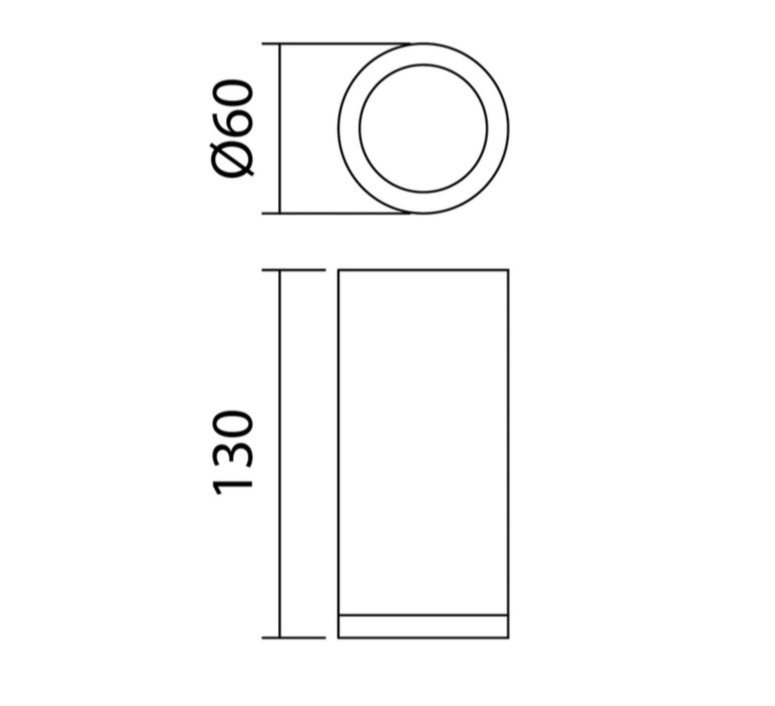 Die Deckenleuchte mit einem Durchmesser von 6 cm und einer Höhe von 13 cm wird an der Decke montiert und mit einer GU10-Glühlampe (nicht im Lieferumfang enthalten) mit einer maximalen Leistung von 10 W betrieben, die für eine präzise und leistungsstarke direkte Beleuchtung empfohlen wird. Da sie nicht dimmbar ist, garantiert sie ein gerichtetes Licht, das ideal für kontrollierte Stimmungen ist.