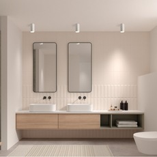 Mit seinen geraden Linien und dem schlanken zylindrischen Design verkörpert Galileo L eine minimalistische Ästhetik, die sich an alle Arten von Umgebungen anpasst. Einzeln oder in Serie installiert, strukturiert sie auf subtile Weise einen Flur, einen Eingangsbereich oder einen Arbeitsbereich. Diese schlichte Leuchte ist Teil einer Familie, die funktionale Eleganz in drei Versionen anbietet: die feststehenden Modelle Galileo S und L sowie die schwenkbare Option Galileo Articulé. Diese Deckenleuchte verfügt über die Schutzart IP44, wodurch sie spritzwasser- und feuchtigkeitsbeständig ist und sich ideal für die Installation in einem Badezimmer oder anderen Feuchträumen eignet.