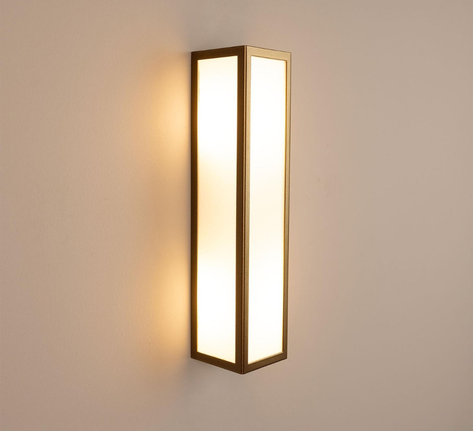 Badezimmer Wandleuchte, Bata, Bronze, Opalglas, IP65, Ø8cm, H35cm - Mullan Lighting