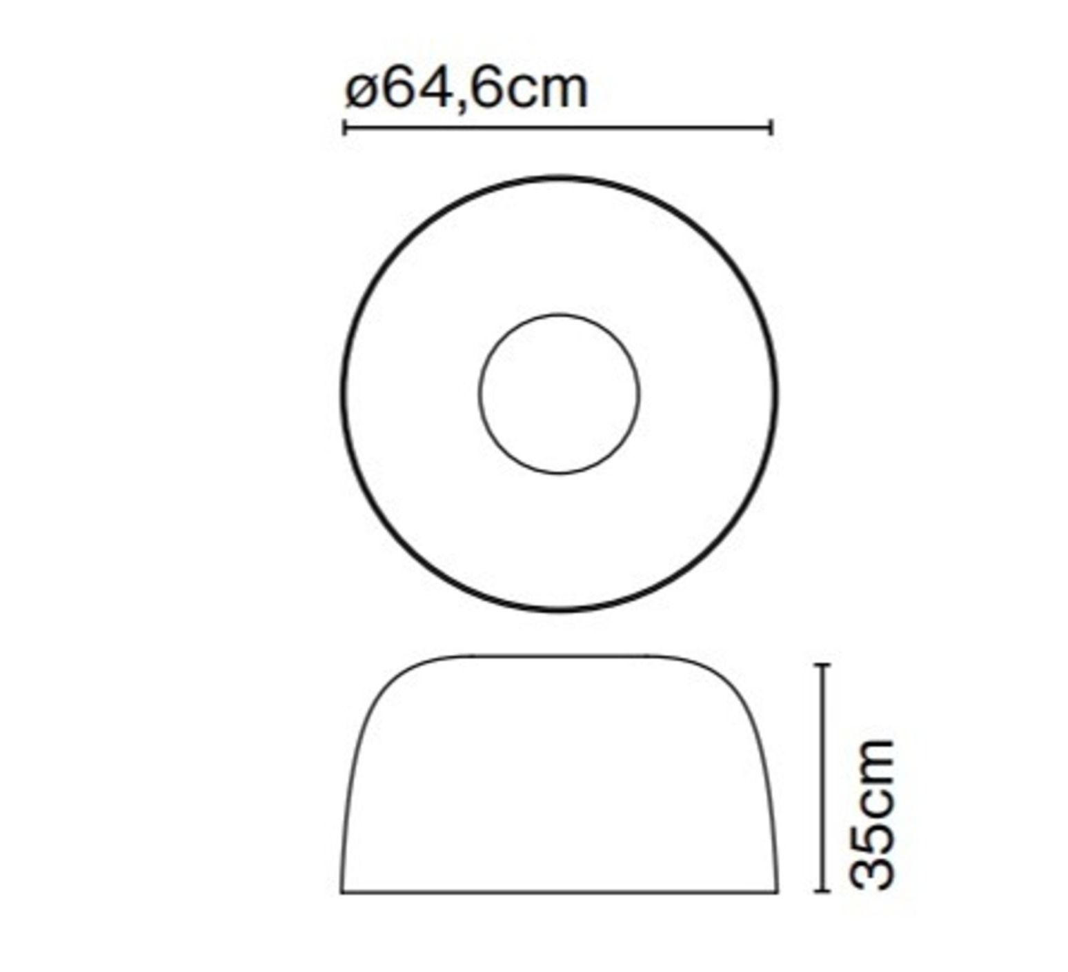 - L 64.6cm x H 35.0cm x P 64.6cm