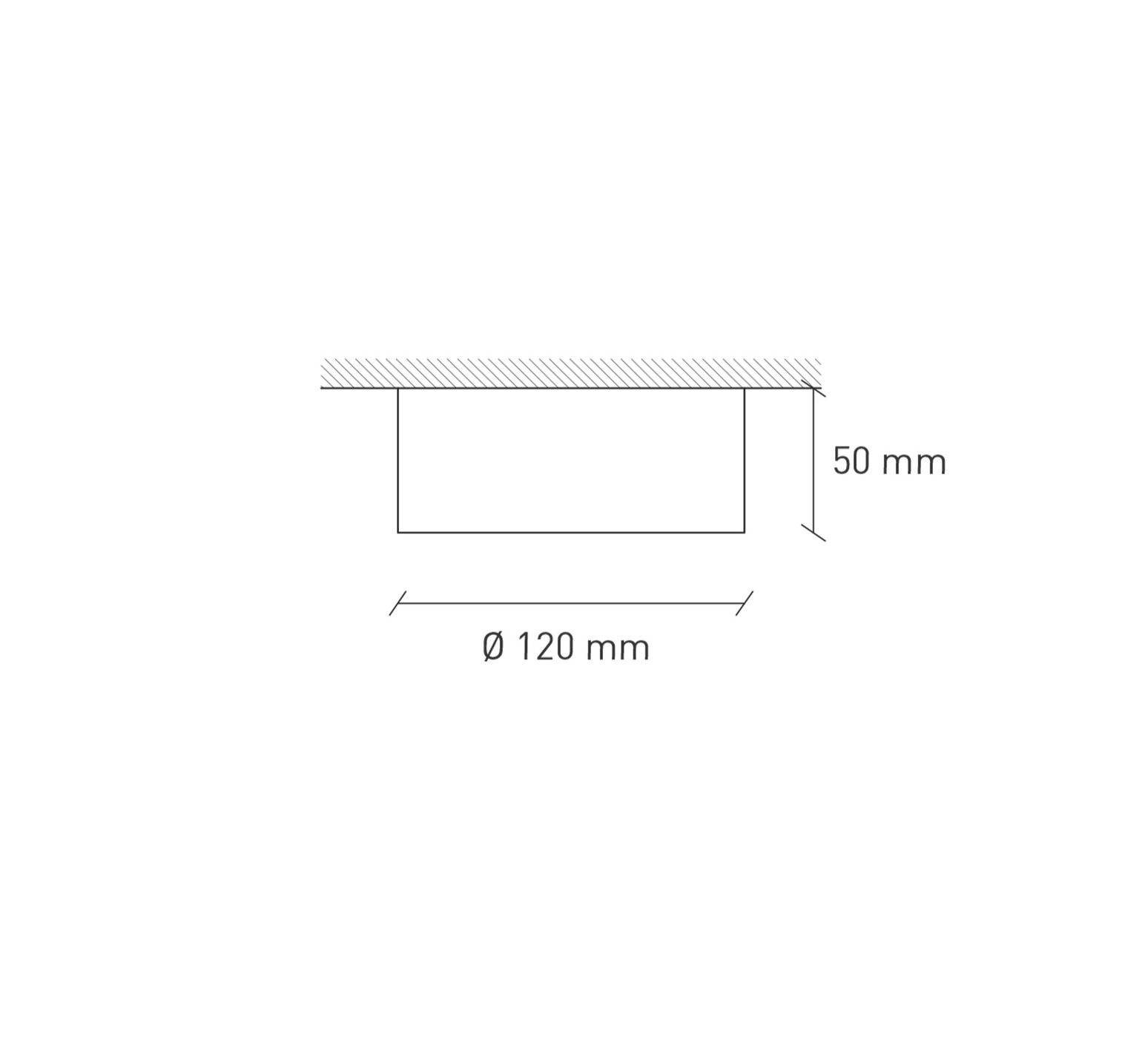 Rino hat einen Durchmesser von 12 cm und eine Höhe von 5 cm. Das Leuchtmittel (1 x GX53) ist nicht im Lieferumfang enthalten.