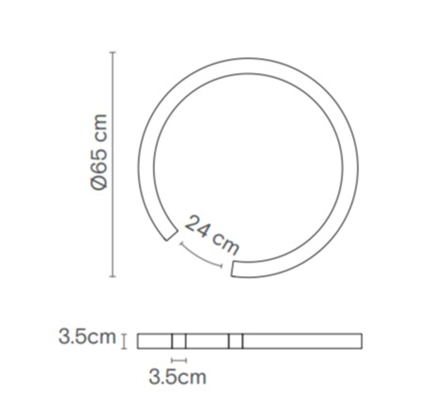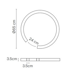 Die Deckenleuchte hat einen Durchmesser von 65 cm und ist 3,5 cm hoch.