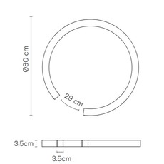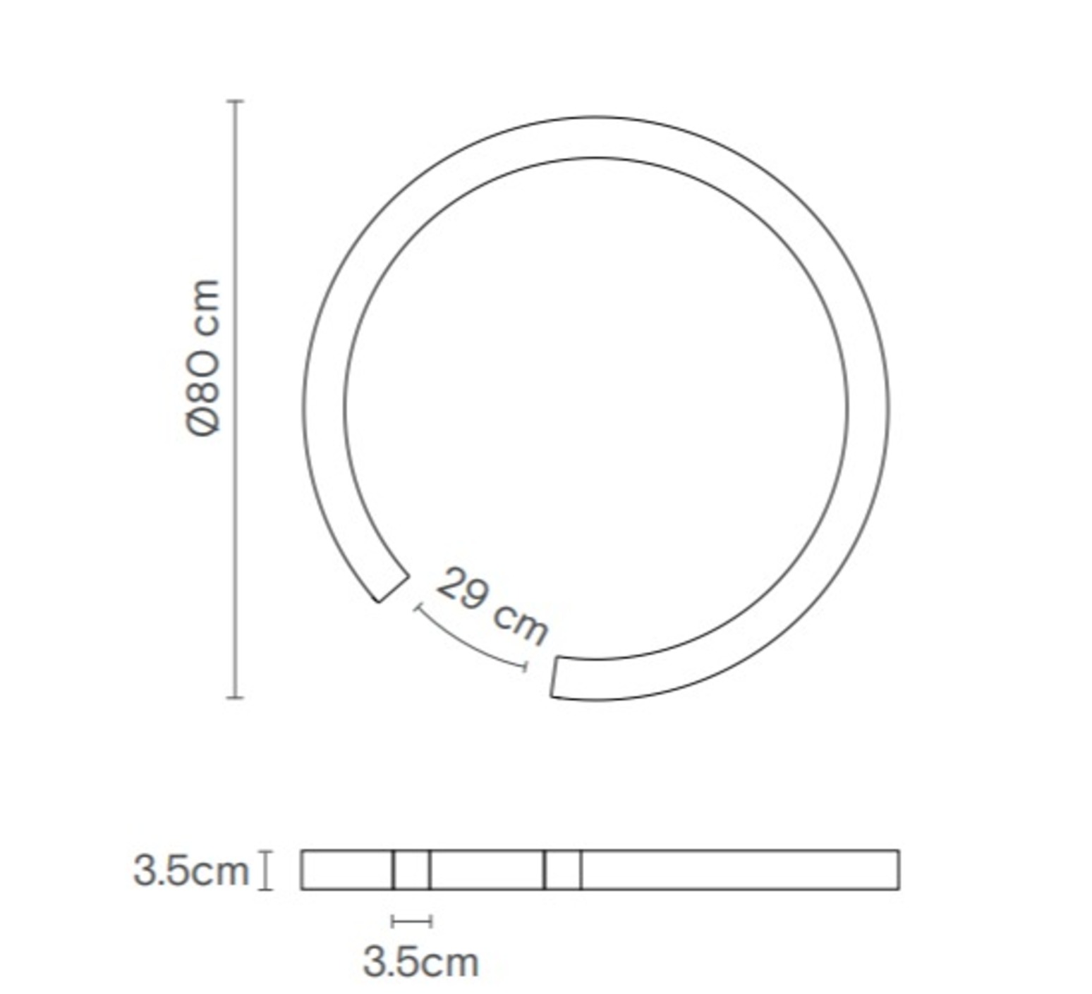 Die Deckenleuchte hat einen Durchmesser von 80 cm und eine Höhe von 3,5 cm.