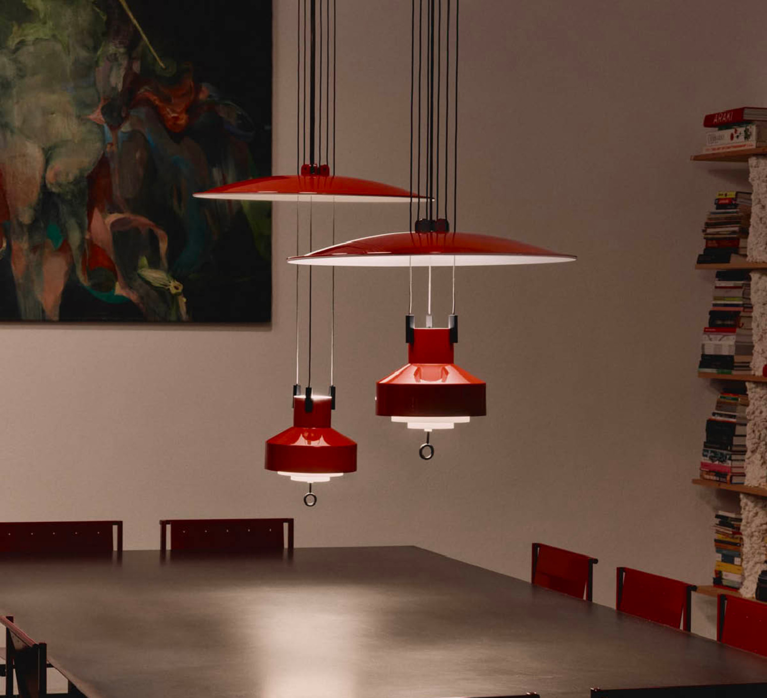 Hängeleuchte, Saliscendi , rot, Ø63cm, H129cm - Stilnovo