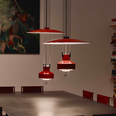 Diese Leuchte wurde 1957 ursprünglich für die Handelskammer von Mailand entworfen und bietet mit ihrem Auf- und Abwärtssystem eine sehr angenehme, modulare Beleuchtung.