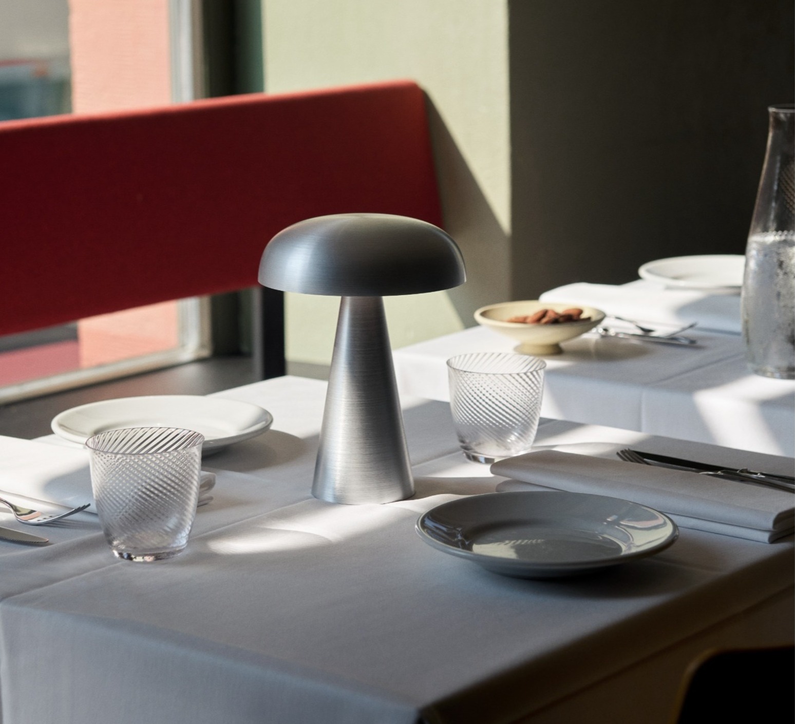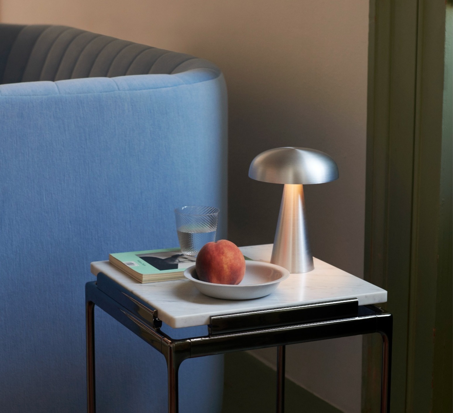 Diese Lampe besticht durch ihr elegantes und schlichtes Design. Aus eloxiertem Aluminium gefertigt, verjüngt sich der robuste Sockel von Como zu einem pilzförmigen Lampenschirm mit sanften Kurven. Diese funktionale, tragbare Lampe ist batteriebetrieben. Sie eignet sich hervorragend für den Innenbereich, z. B. auf einem Tisch oder einem Regal, und dank IP 44 auch für den Außenbereich. Sie sorgt für eine gemütliche und warme Atmosphäre.
