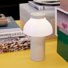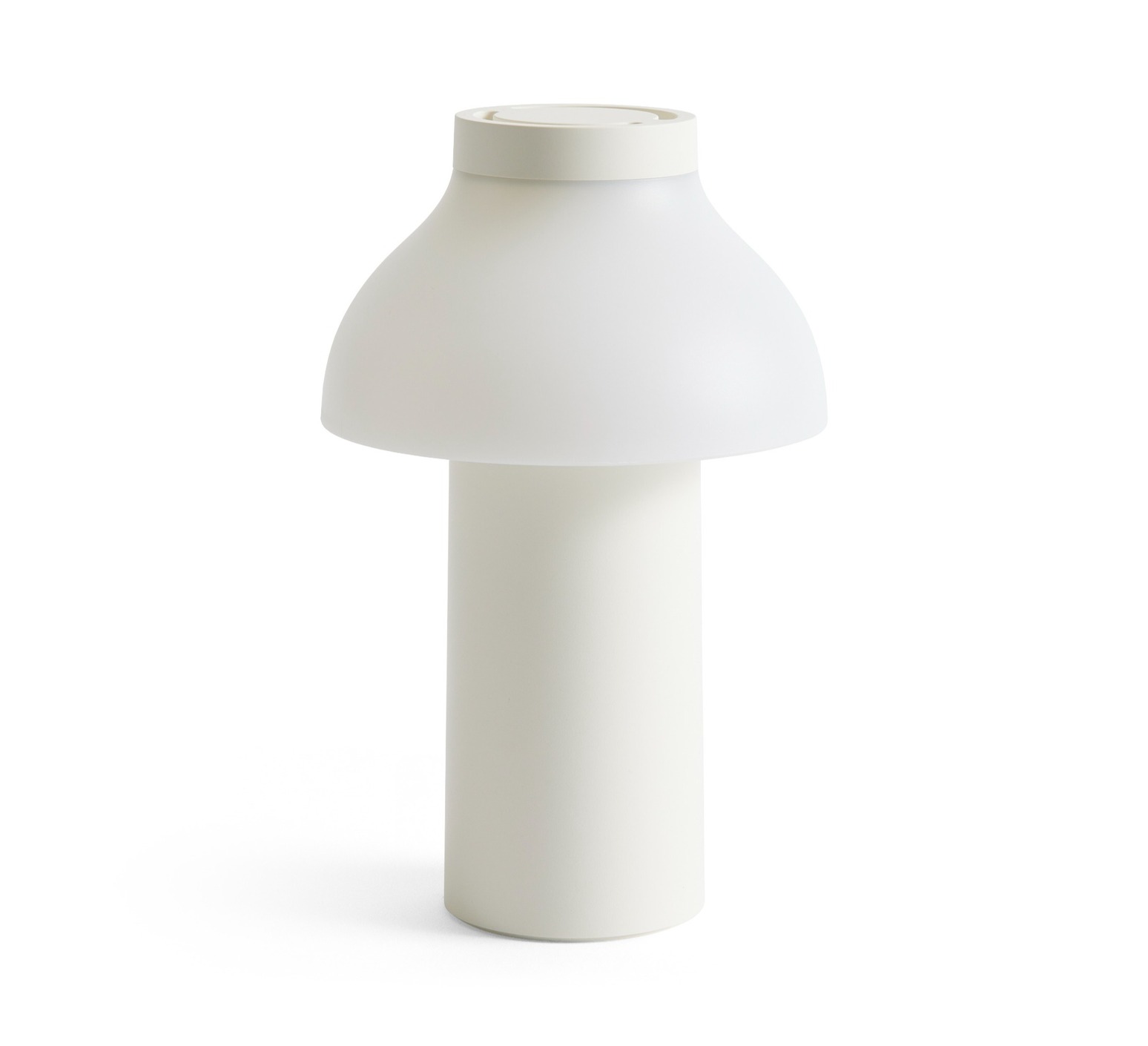 Entdecken Sie die tragbare PC-Handleuchte in cremeweißer Ausführung, die von Pierre Charpin für das skandinavische Haus Hay entworfen wurde.