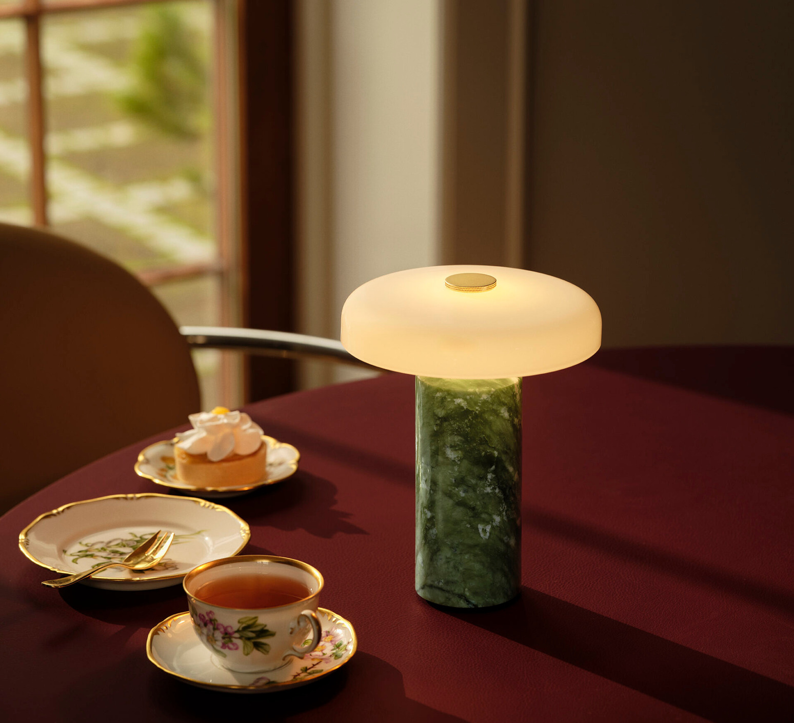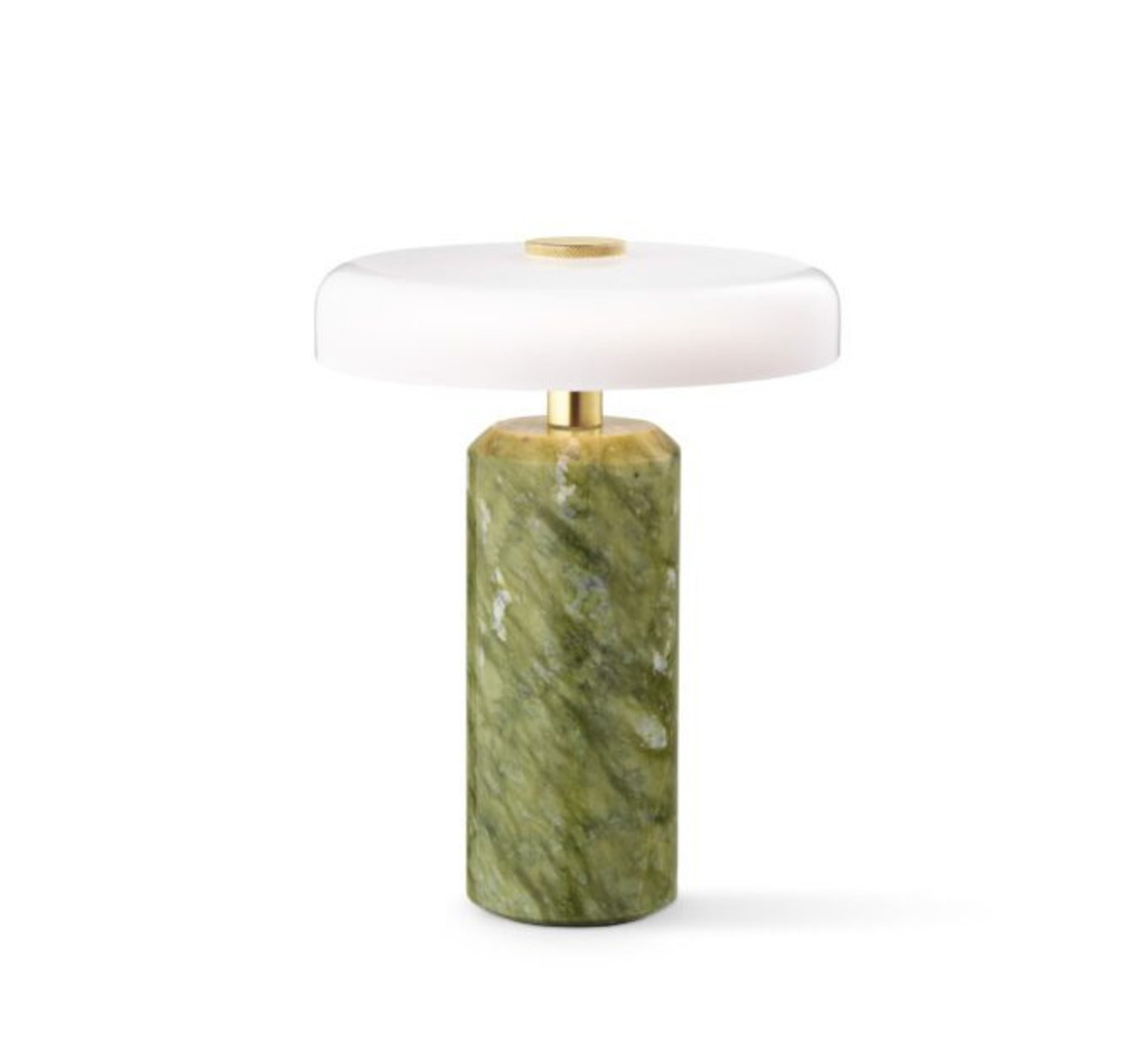 Bringen Sie Eleganz in Ihre Innen- und Außenräume mit der Handleuchte Trip Opalinweiß und apfelgrünem Marmor des dänischen Studios Design By Us!