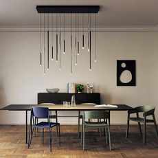 Die Hängeleuchte A-Tube small zeichnet sich durch ihr grafisches Rohrdesign aus. Sie passt perfekt in verschiedene Umgebungen, sei es in ein Wohnzimmer, ein Treppenhaus oder eine Eventlocation. Dank ihres 4 m langen Kabels bietet sie eine flexible Installation, die den Effekt einer hohen Decke betont. Durch die Kombination mehrerer Pendelleuchten aus der Tube Nano Kollektion lassen sich originelle Kompositionen schaffen.
