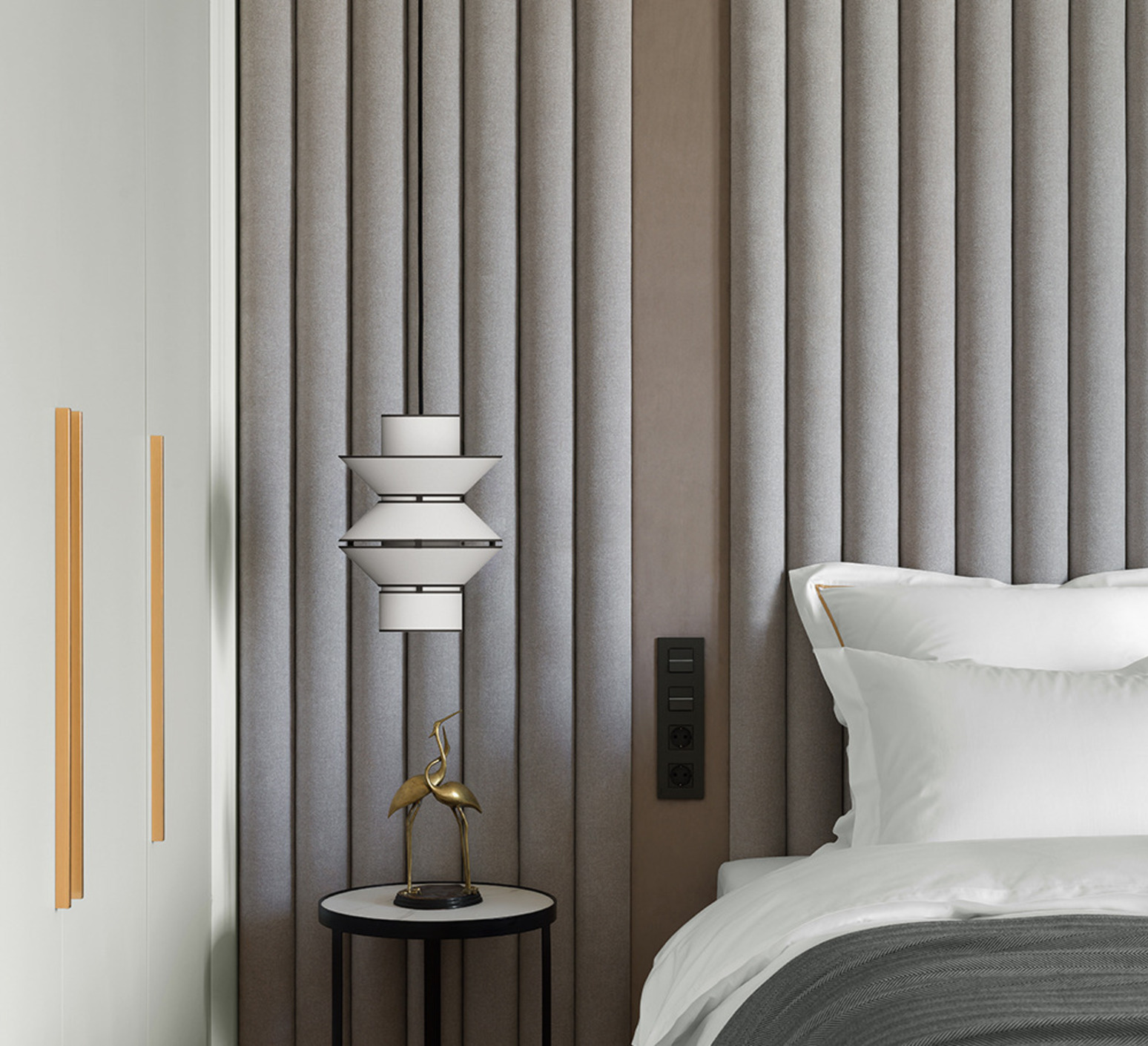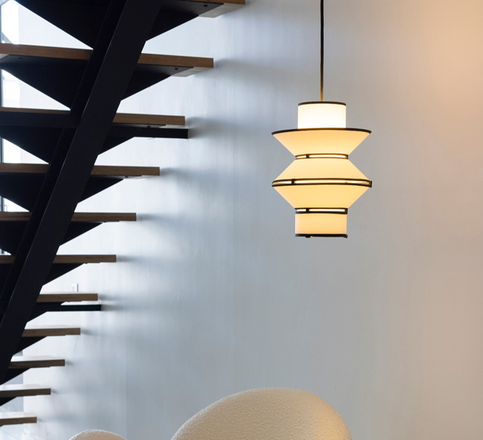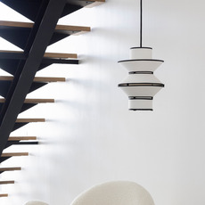 Die Kollektion Tower ist von den Art-Deco-Türmen in der Architektur inspiriert. Die zentrale Säule verweist auf den tragenden Pfeiler, hier bei der Hängeleuchte Tower stapeln sich die Lampenschirme in verschiedenen Größen und Formen nacheinander. Jedes Stockwerk des "Turms" ist durch feine, schwarz umrandete Scharten oder Öffnungen begrenzt, die das Licht wie beleuchtete Fenster durchlassen. So bringt die Hängeleuchte Tower durch ihr geometrisches Aussehen und ihre Lichtstreuung einen Rhythmus in Ihr Zuhause.