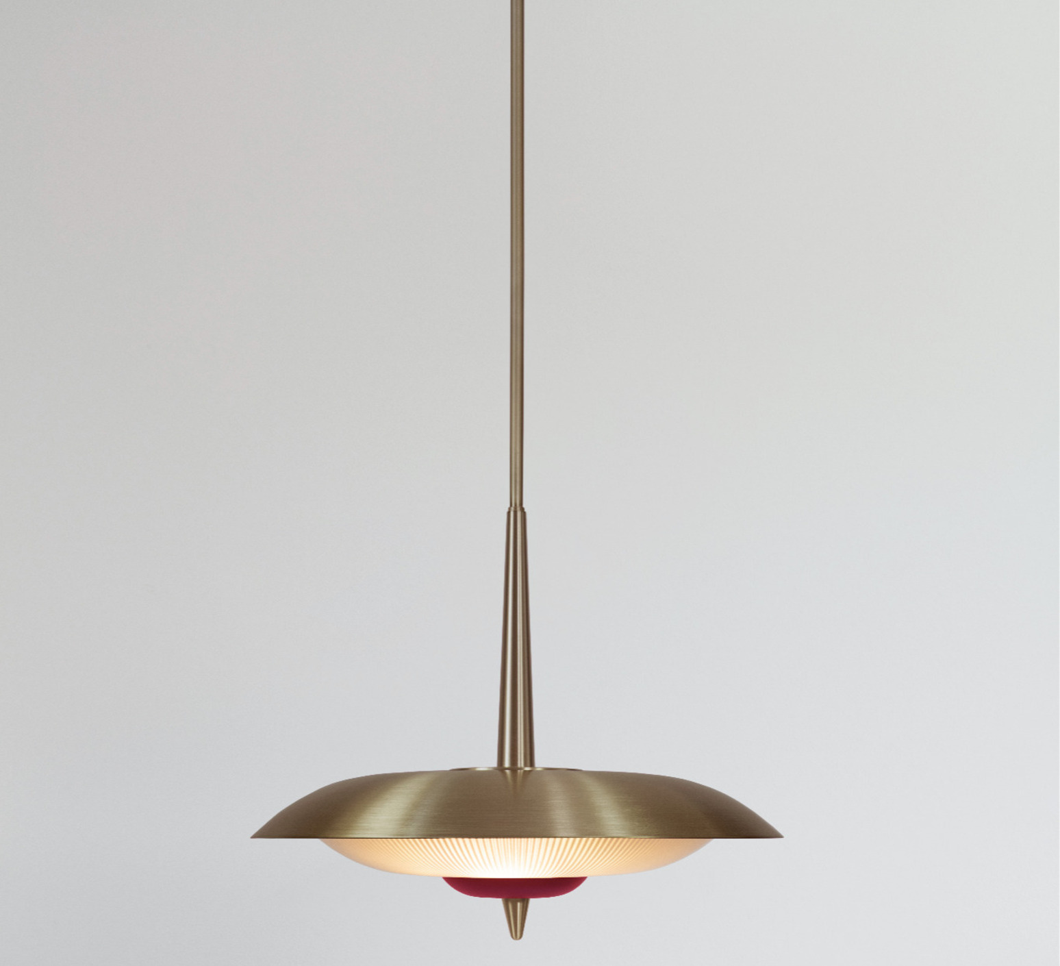 Ihr raffiniertes Design und die edlen Materialien wie Messing und Glas verleihen ihr ein zeitloses Aussehen. Ihr rotes Zentrum zieht die Blicke auf sich und sorgt für einen subtilen Farbakzent. Diese Hängeleuchte wird Ihr Zuhause erhellen und ihm gleichzeitig einen Hauch von Raffinesse verleihen.