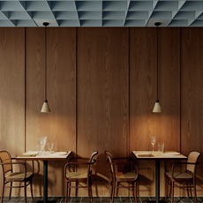 Jeder konische Lampenschirm wird aus einem Stück massivem Erlenholz geformt, das für seine subtile Maserung und seine Langlebigkeit bekannt ist. Der Kontrast zwischen dem hellen Holzton und dem matten Metallfinish schafft eine sanfte Harmonie, die sich perfekt über einer Arbeitsplatte, einem Tisch oder einer Theke macht. Dank ihres schlichten Designs passt diese Hängeleuchte sowohl in ein modernes Interieur als auch in eine natürliche oder böhmische Einrichtung.