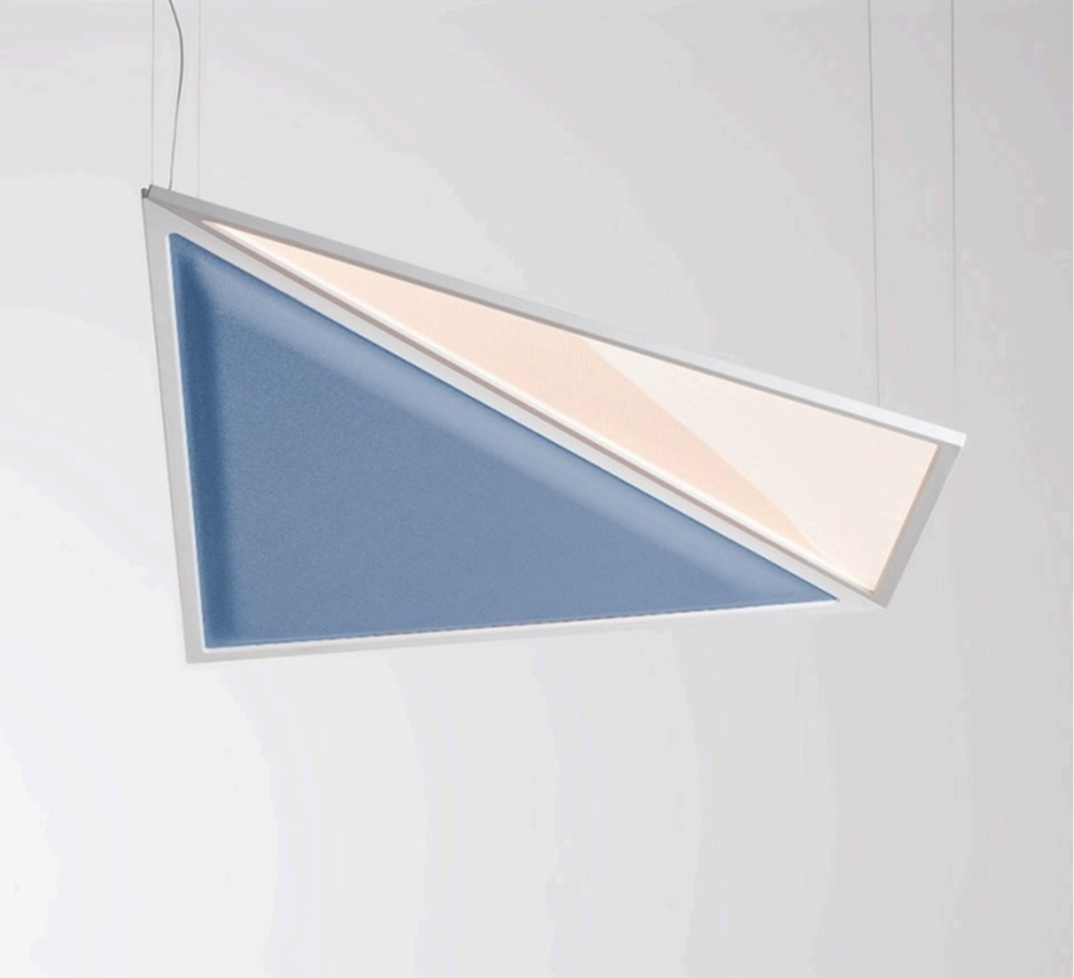 Dieser poetische und grafische Ansatz verwandelt die Hängeleuchte in eine hängende Lichtskulptur, bei der das Licht gleichmäßig durch die lichtdurchlässige Oberfläche streut und eine Lichtpräsenz zum Leben erweckt, die zugleich leicht und ausdrucksstark ist.