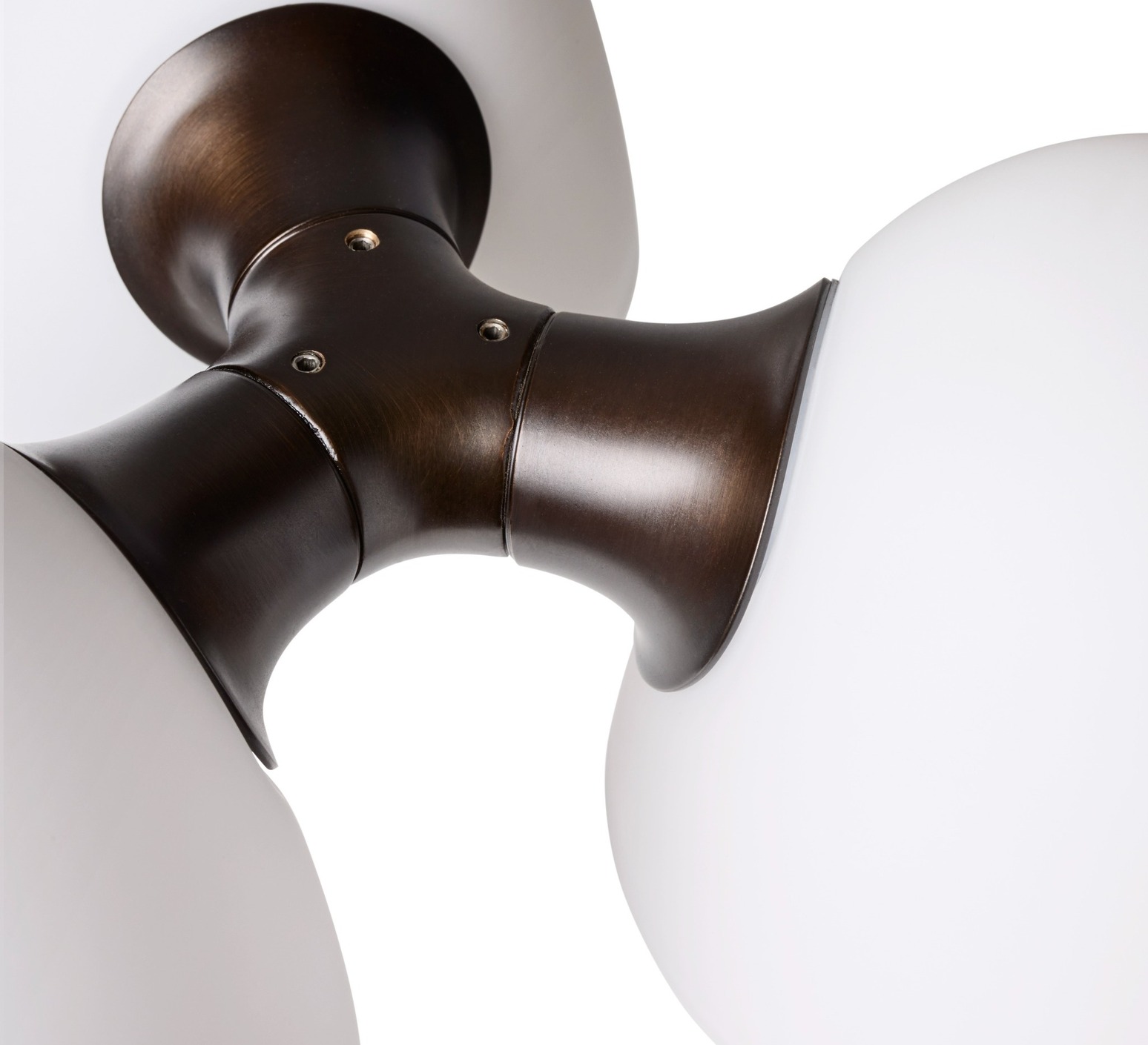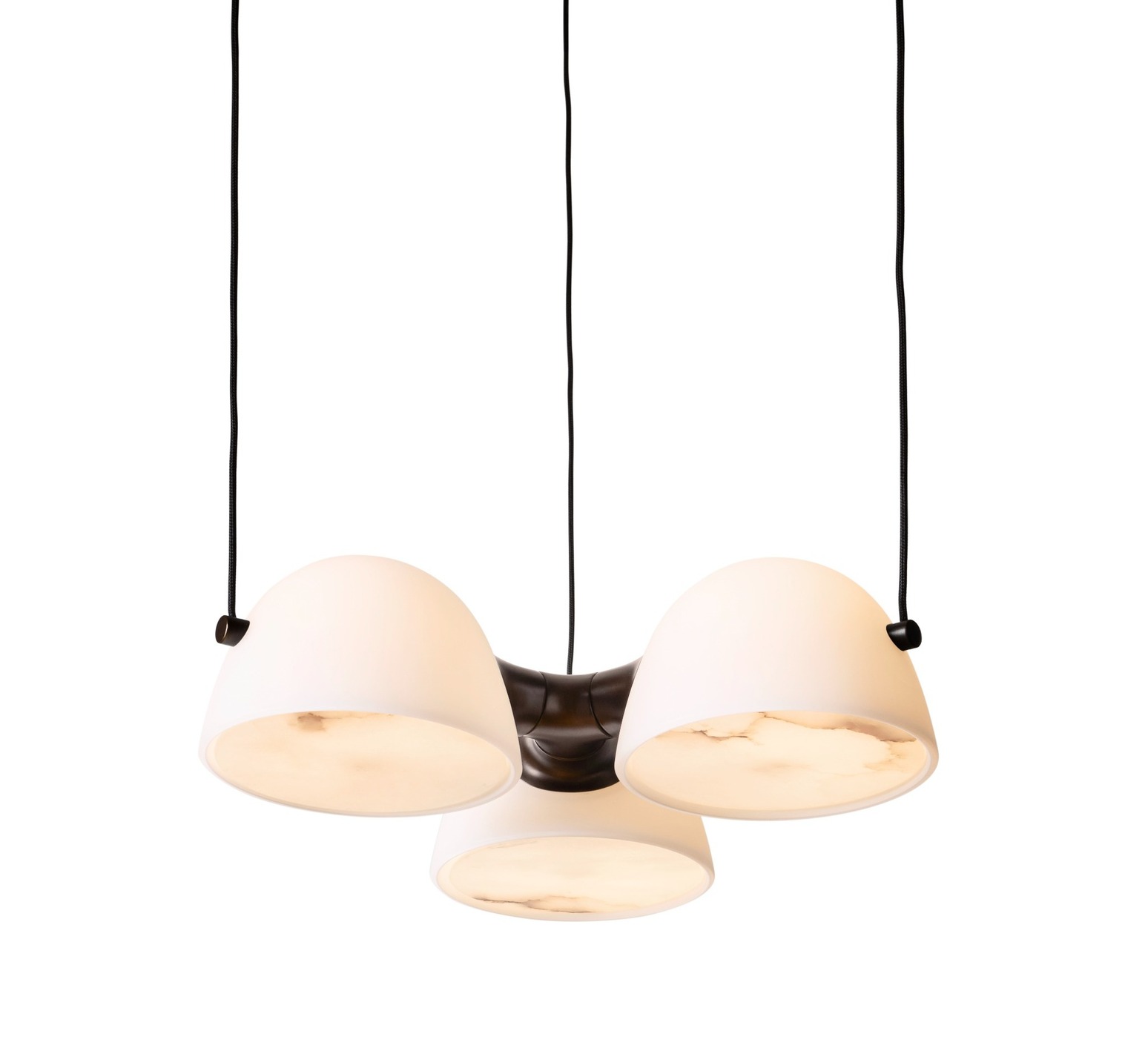 Hängeleuchte, Fuse Triple, brüniertes Messing, Opalglas, Alabaster, B27cm, H10cm - Made by Hand