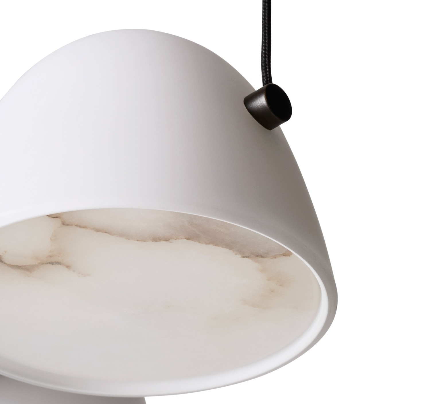 Sie wurde aus edlen Materialien wie brüniertem Messing, Opalglas und natürlichem Alabasterstein gefertigt und verkörpert die zeitlose Eleganz und handwerkliche Präzision, die dem skandinavischen Design eigen sind. Jedes Detail ist auf Langlebigkeit ausgelegt, in einer subtilen Harmonie zwischen Struktur und Licht.