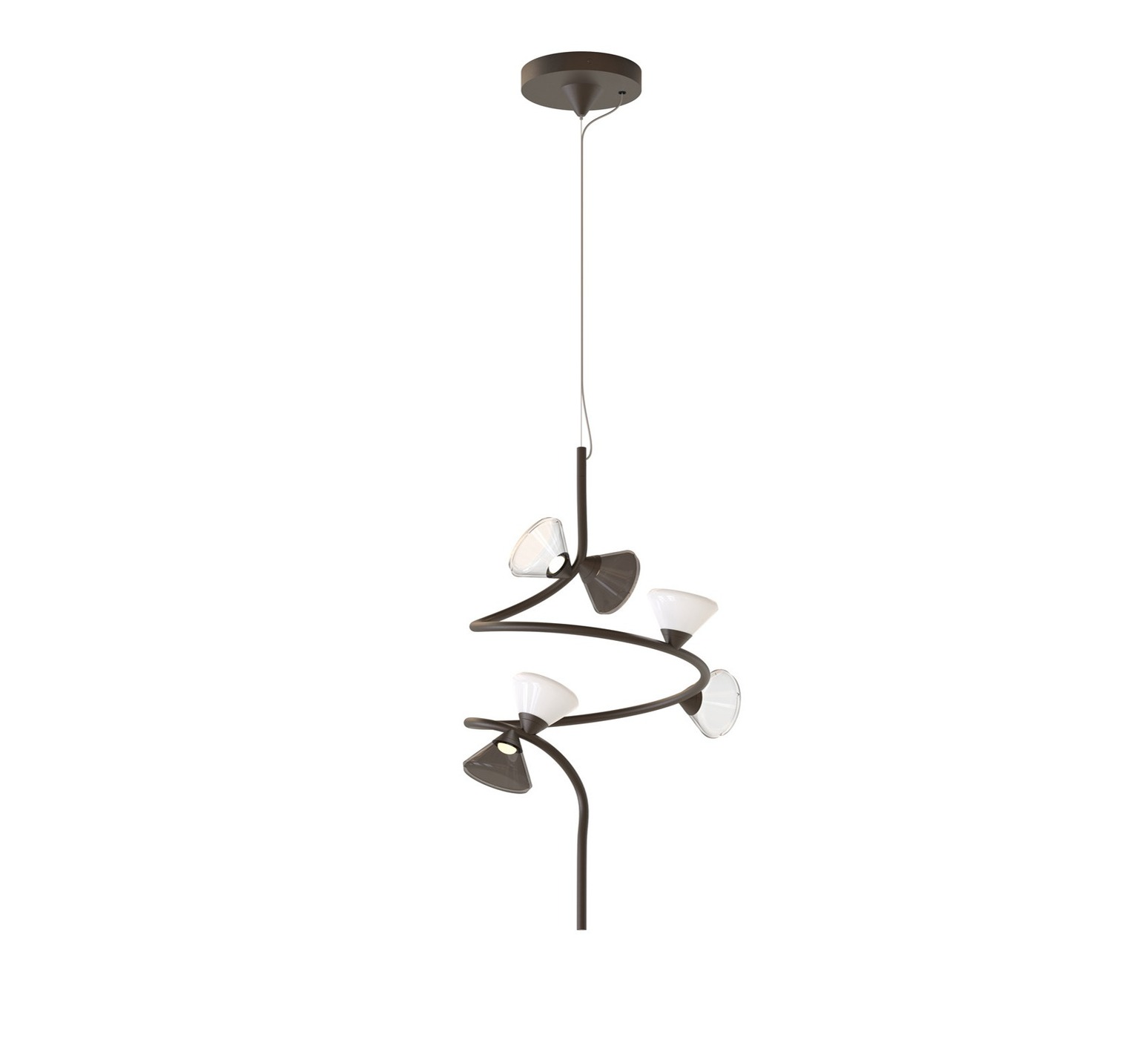 Ihr Titan-Finish in Verbindung mit den Glasdiffusoren (rauchfarben, transparent oder milchig-weiß) verleiht der Leuchte eine organische und raffinierte Eleganz.