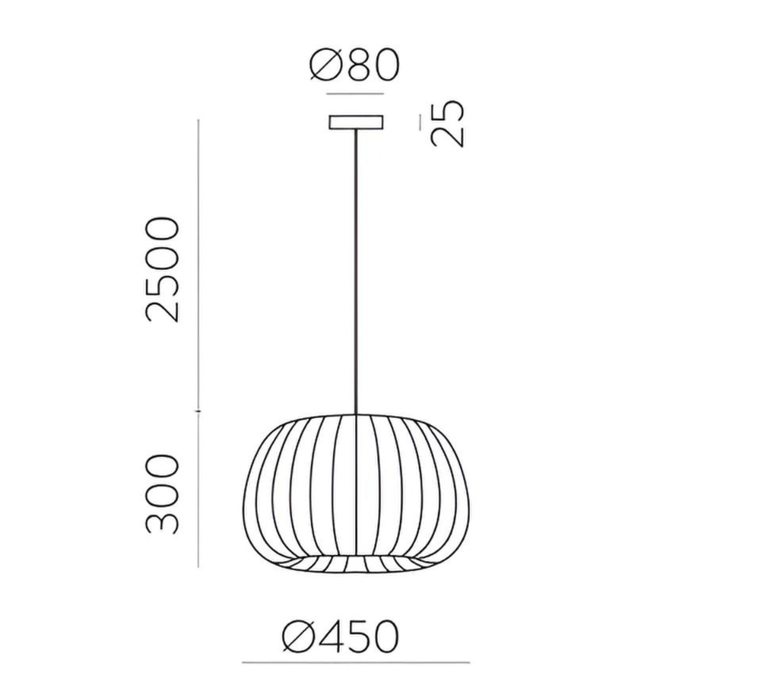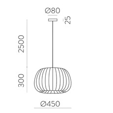 Sie hat einen Durchmesser von 45 cm und kann dank des Kabels in der Höhe verstellt werden, sodass Sie ihre Position je nach Bedarf leicht anpassen können. Sie funktioniert mit einer E27-Glühbirne mit einer maximalen Leistung von 15 W, die im unverzichtbaren Zubehör erhältlich ist.