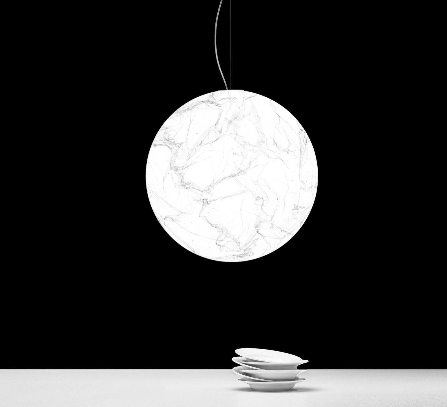 Entdecken Sie die ikonische Pendelleuchte Moon des italienischen Designers Davide Groppi.