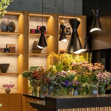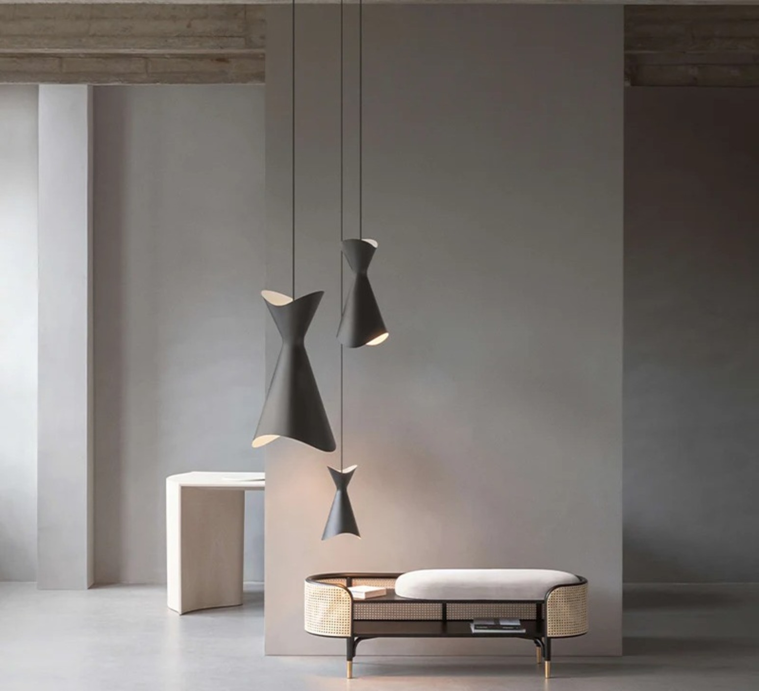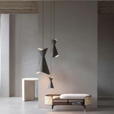 Der Lampenschirm aus schwarzem Stahl ist der Linie eines Hutes nachempfunden, den Greta Garbo in dem Film "Ninotschka" trug - eine direkte Inspirationsquelle des Designers. Die obere Öffnung streut ein weiches Licht zur Decke, während die direkte Beleuchtung nach unten ein funktionales und komfortables Erscheinungsbild schafft. Ihre asymmetrische Geometrie ermöglicht ein subtiles Spiel zwischen Licht und Schatten, je nach Blickwinkel. Die Pendelleuchte findet natürlich ihren Platz in einer Leseecke, über einem Tisch oder als Wiederholung in einem Flur, um ihren grafischen Charakter zu verstärken.