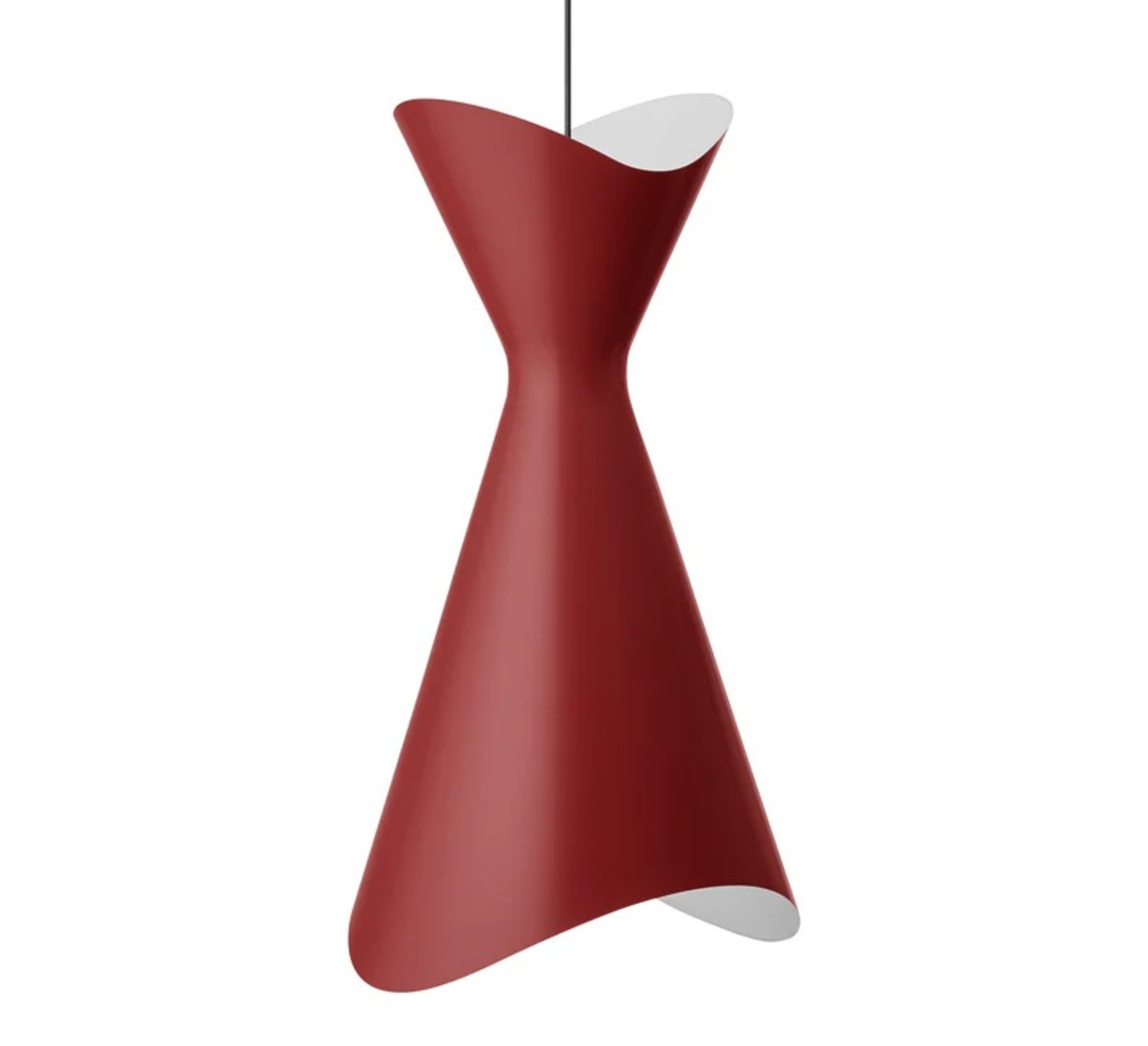 Der Lampenschirm aus rotem Stahl ist der Linie eines Hutes nachempfunden, den Greta Garbo in dem Film "Ninotschka" trug - eine direkte Inspirationsquelle des Designers. Die obere Öffnung streut ein weiches Licht zur Decke, während die direkte Beleuchtung nach unten ein funktionales und komfortables Erscheinungsbild schafft. Ihre asymmetrische Geometrie ermöglicht ein subtiles Spiel zwischen Licht und Schatten, je nach Blickwinkel. Die Pendelleuchte findet natürlich ihren Platz in einer Leseecke, über einem Tisch oder als Wiederholung in einem Flur, um ihren grafischen Charakter zu verstärken.