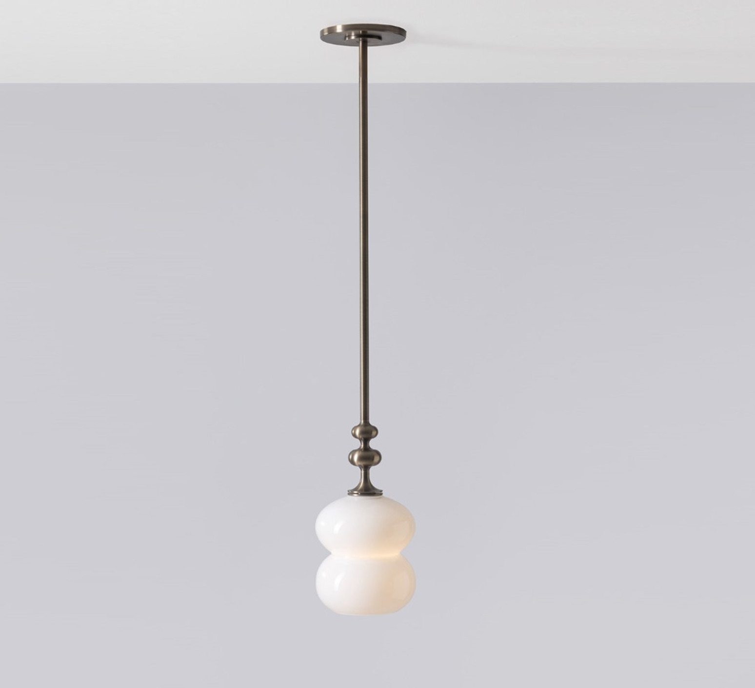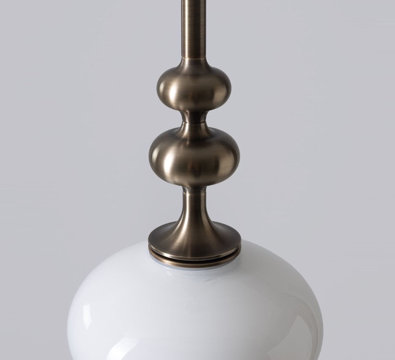 Die Hängeleuchte Oestre zeichnet sich durch ihre geschwungenen Linien und die zylindrische Form mit doppeltem Ellipsoid aus, die aus mundgeblasenem weißem Glas gefertigt wurden. Das Finish aus antikem Messing verlängert den Diffusor elegant mit einem raffinierten dekorativen Profil und verleiht ihm eine subtile und warme Präsenz. Ideal über einem Tisch, einer Insel oder in einer Mehrfachkomposition, strukturiert sie den Raum und verbreitet gleichzeitig eine sanfte und anspruchsvolle Atmosphäre.