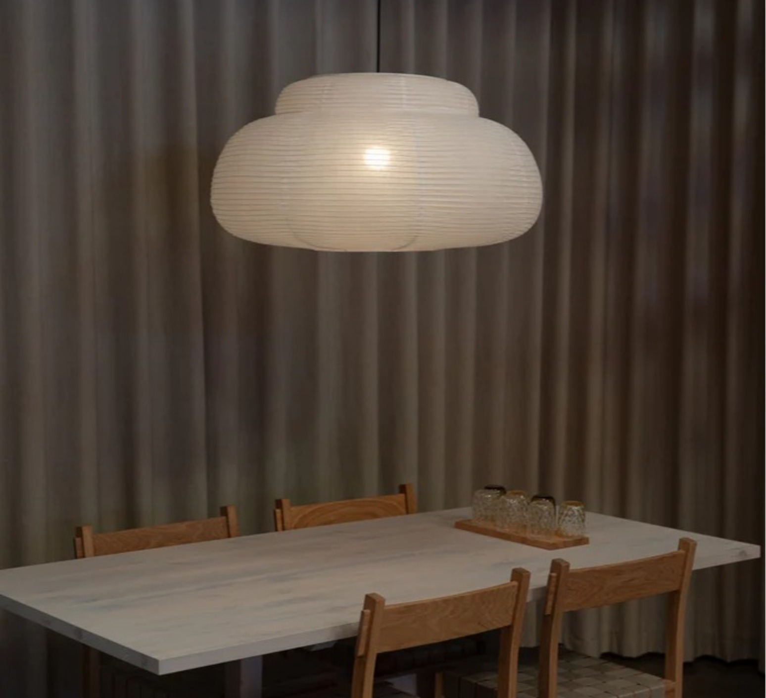 Die in Dänemark entworfene Leuchte spiegelt die Begegnung zwischen japanischer Handwerkstradition und skandinavischem Minimalismus wider.