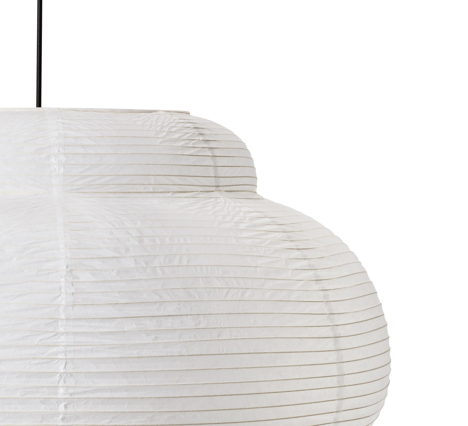 Die von der Designerin Nina Bruun für die dänische Marke Made by Hand entworfene Hängeleuchte Papier Simple ist Teil der Papier-Kollektion, einer Serie poetischer Leuchten, die die Leichtigkeit und Reinheit von Reispapier erkunden.