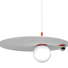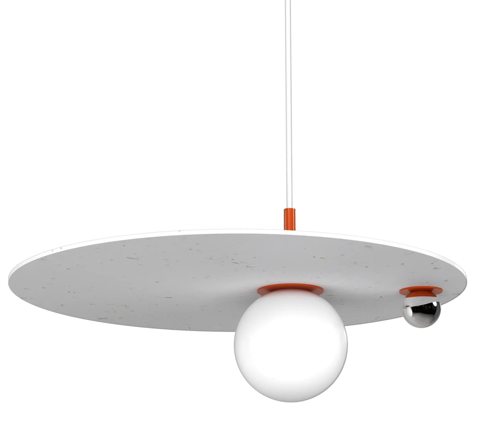 Inspiriert vom Gleichgewicht unseres Universums, gibt es diese Hängeleuchte in einer großen Version, die mit dem Gleichgewicht spielt, und einer kleinen Version, die zentriert ist und kein Gewicht hat.
