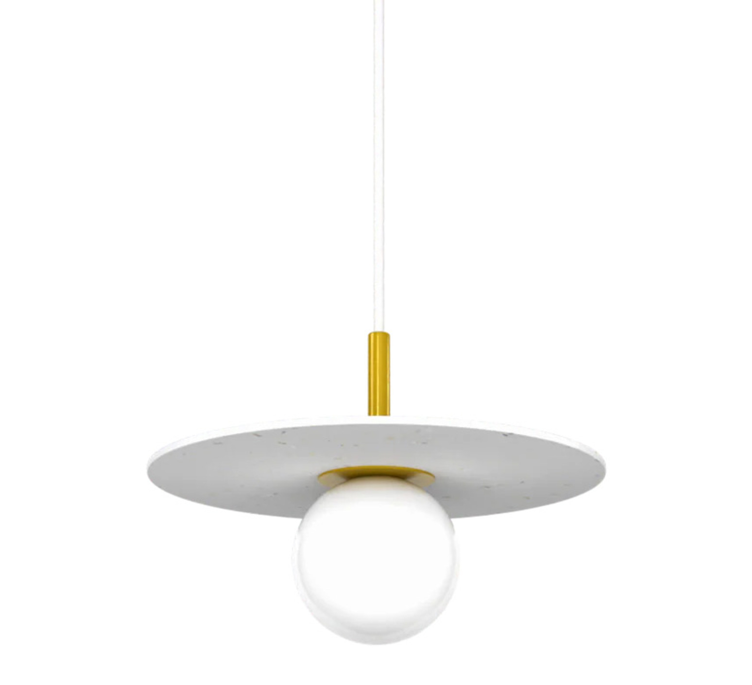 Die Absicht der Designerin war es, die Form der Erdkugel auf eine neue Art und Weise darzustellen und ein Gleichgewicht mit einer Aufhängung zu finden, die nicht zu viel Platz einnimmt, sondern einem Raum Raum verleiht.