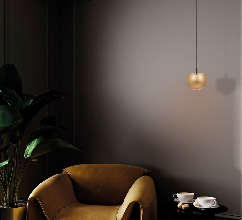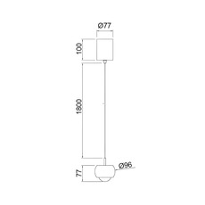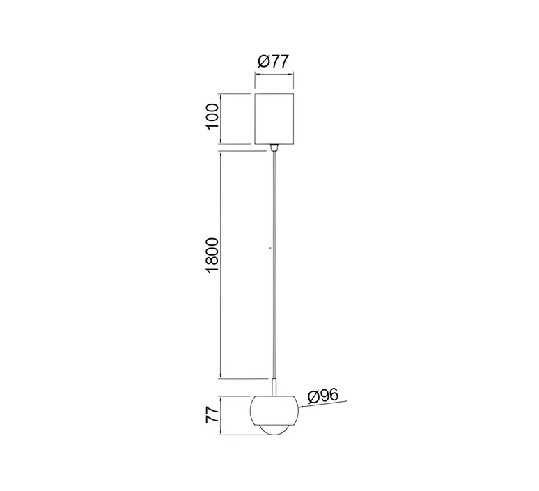 Die Pendelleuchte Roller hat einen Durchmesser von 9,6 cm, eine Höhe von 7,7 cm und ist mit einem 1,8 m langen schwarzen Kabel ausgestattet.